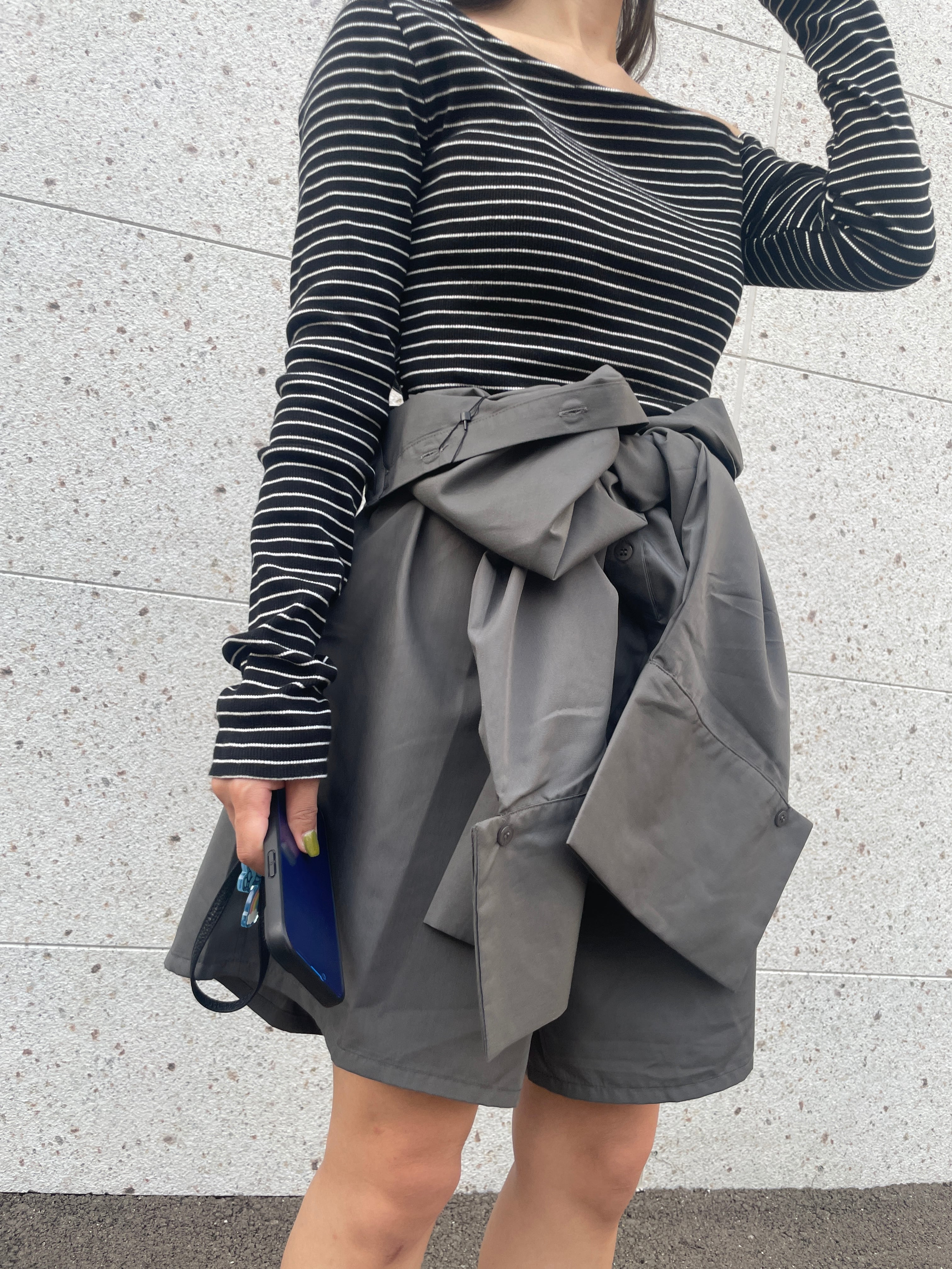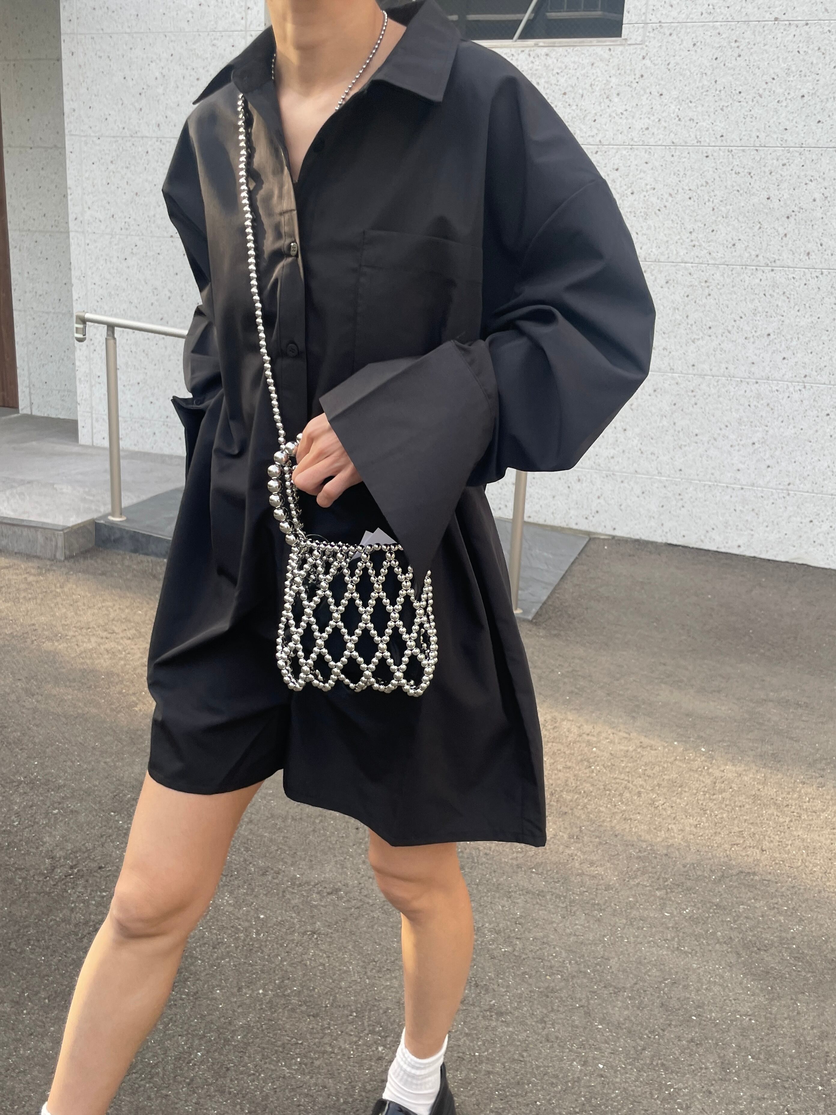 シャツ素材のロンパース1枚でコーディネートが決まるアイテムです◎レイヤードアイテムとしてもご着用いただけます