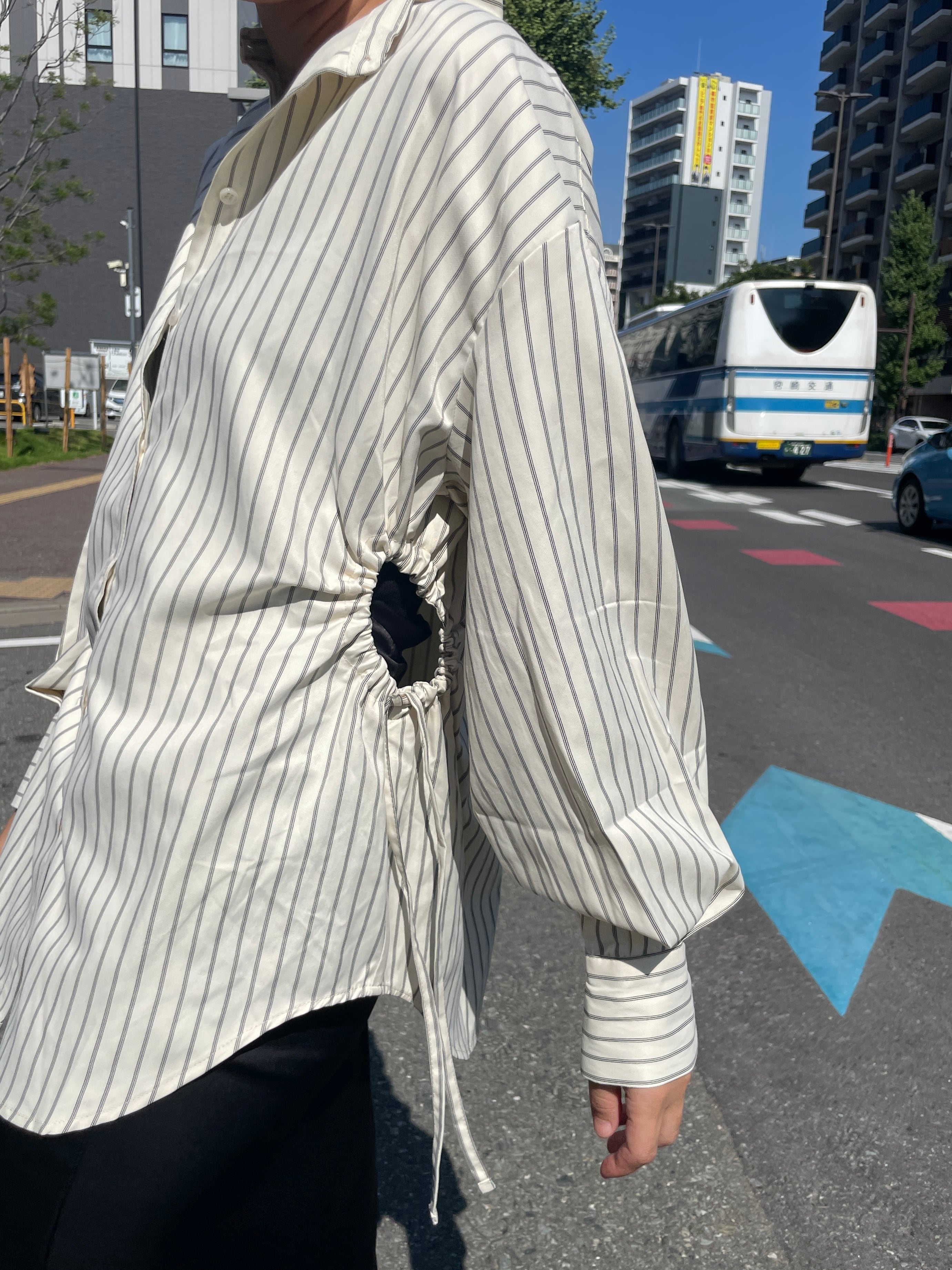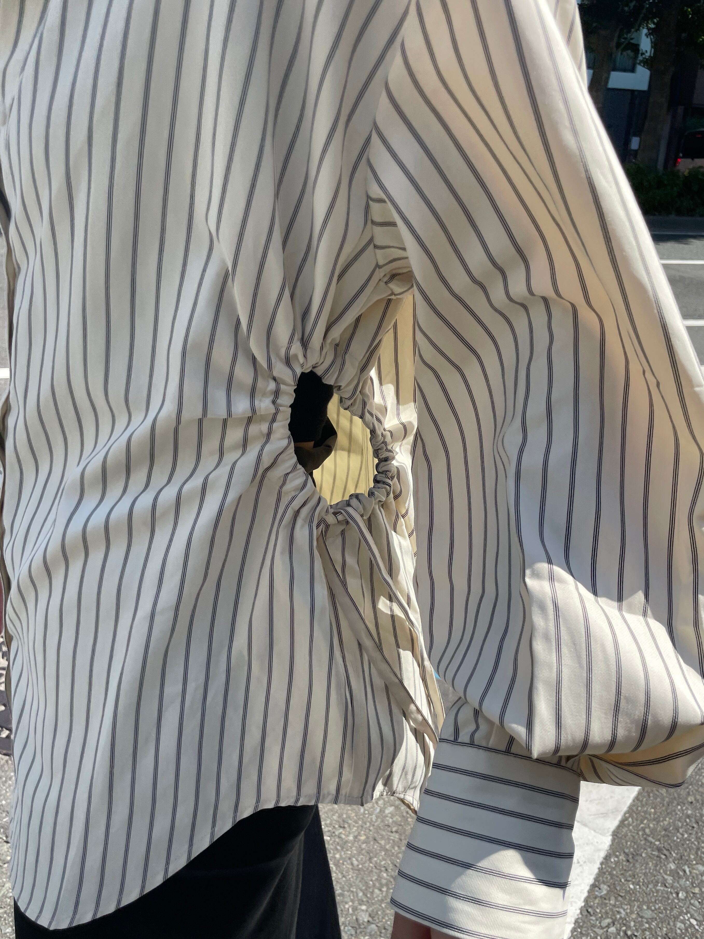 ストライプサイドホールブラウス