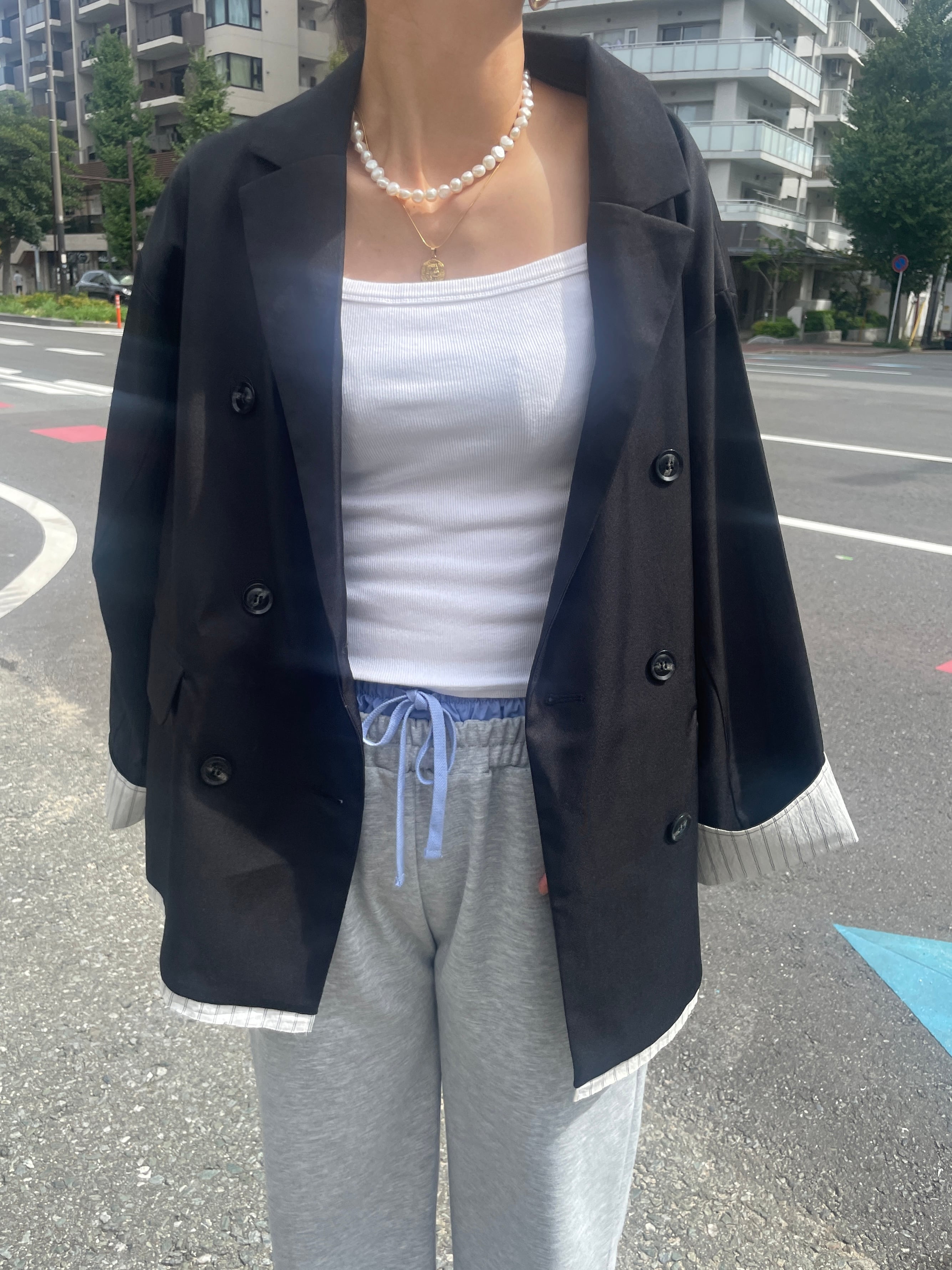 トレンド感あふれるレイヤード風ジャケット