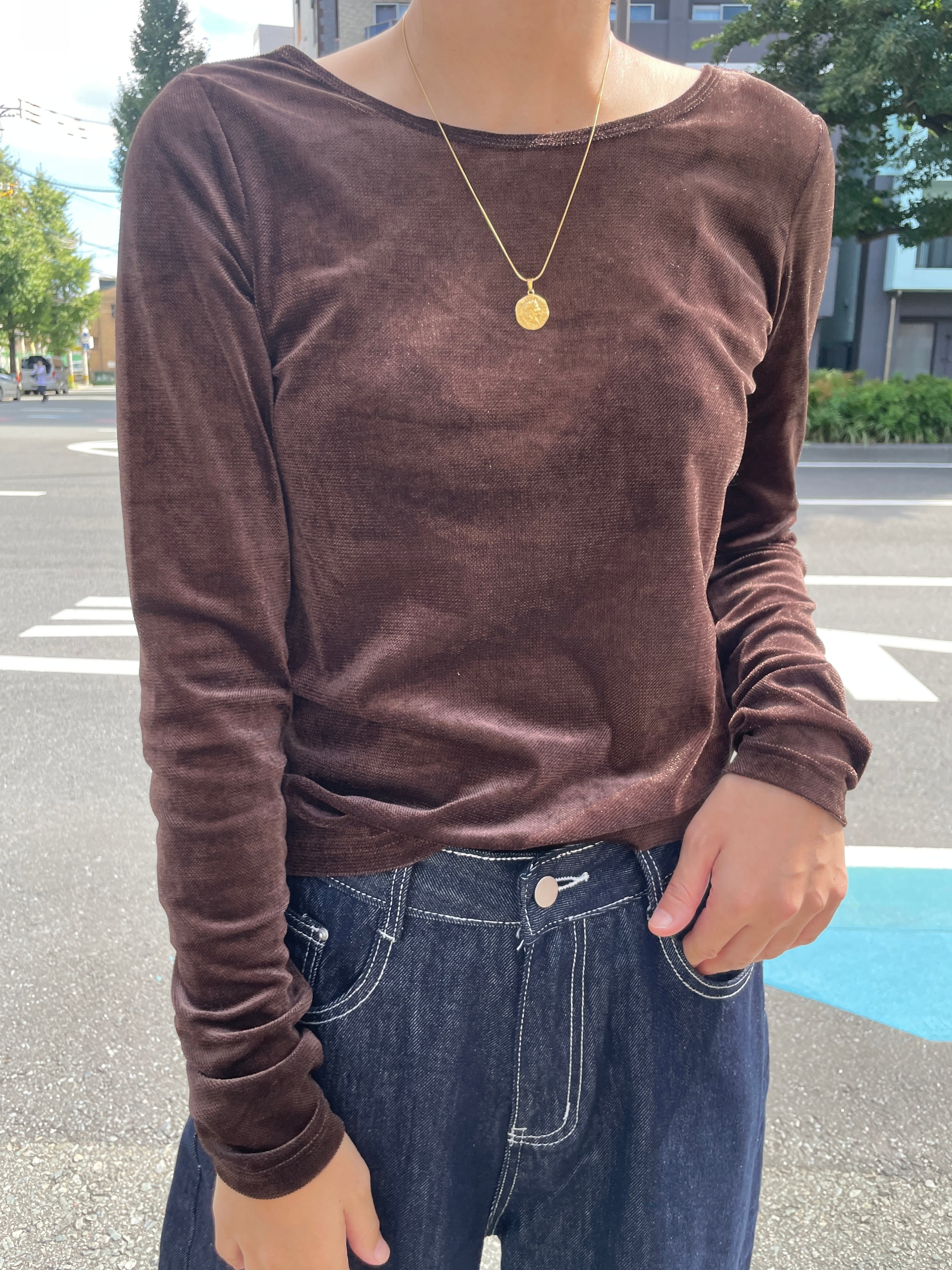 シアーベロアバックオープンプルオーバー