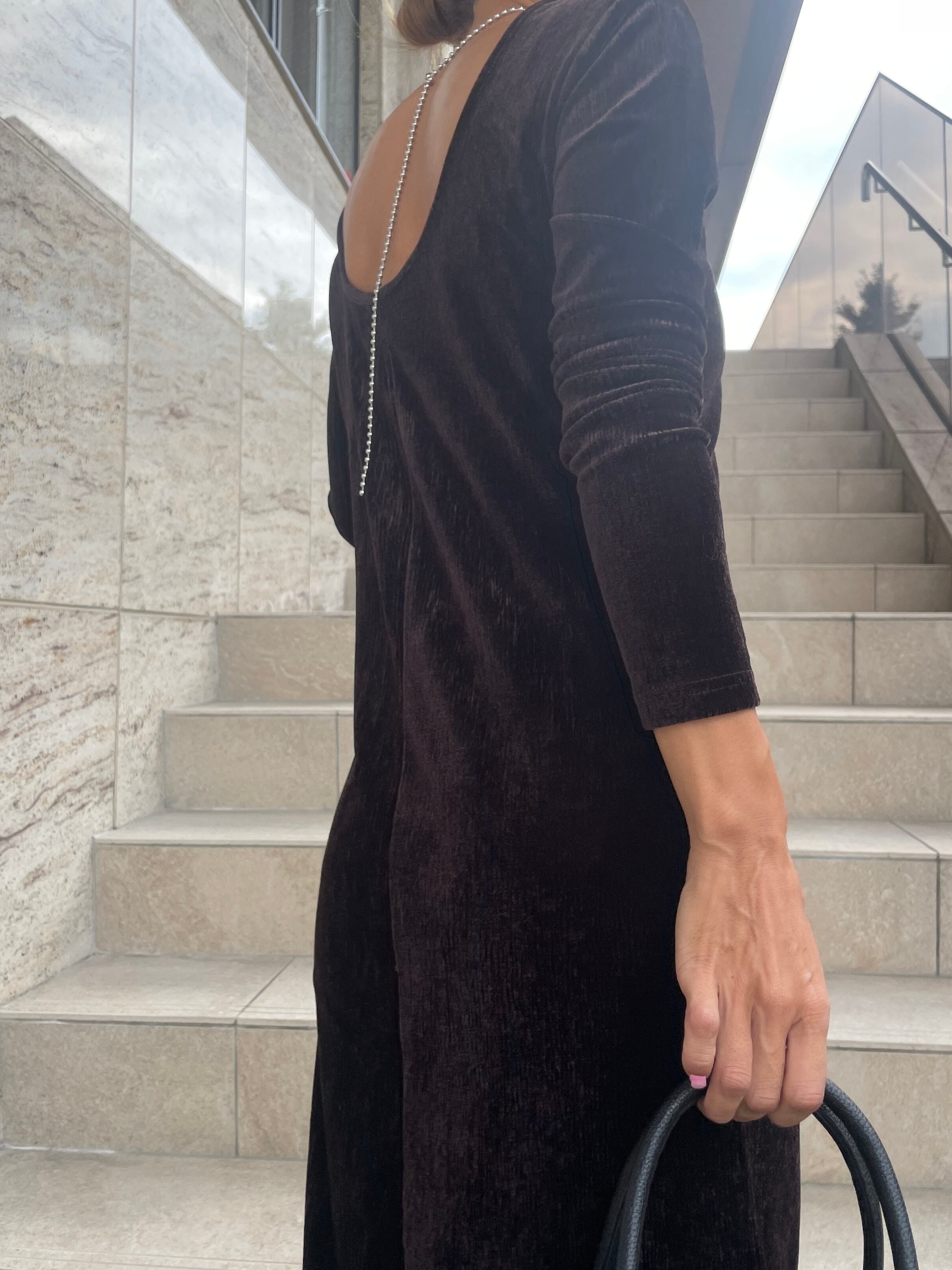 ストレートなシルエットで程よくボディラインを出してくれるアイテム