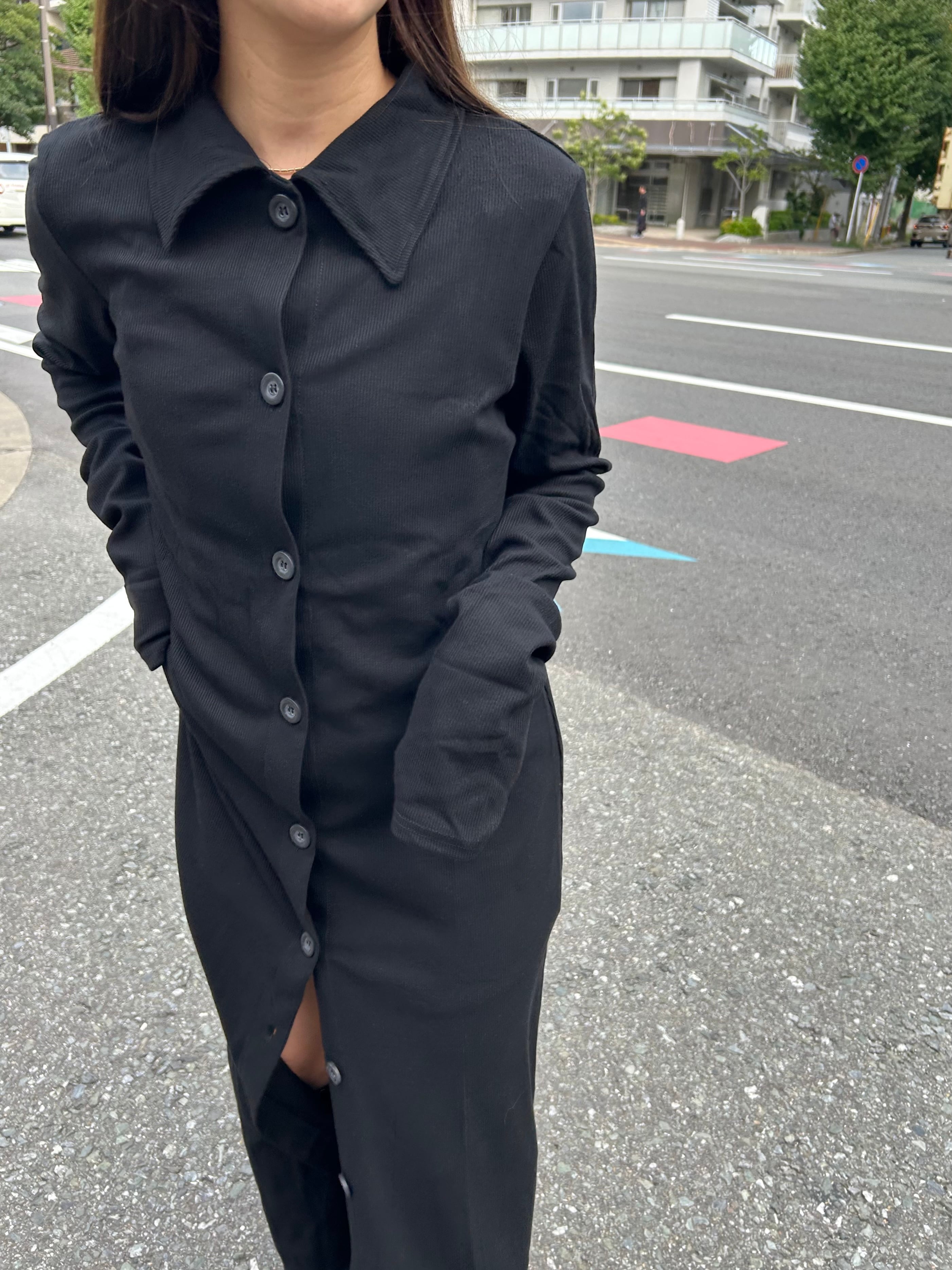 カットリブの襟付きワンピースが登場