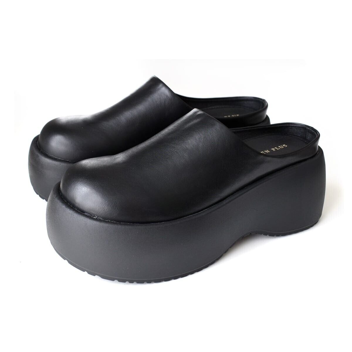 モード感あるオールブラックの厚底シルエットでスタイリングを格上げしてくれます