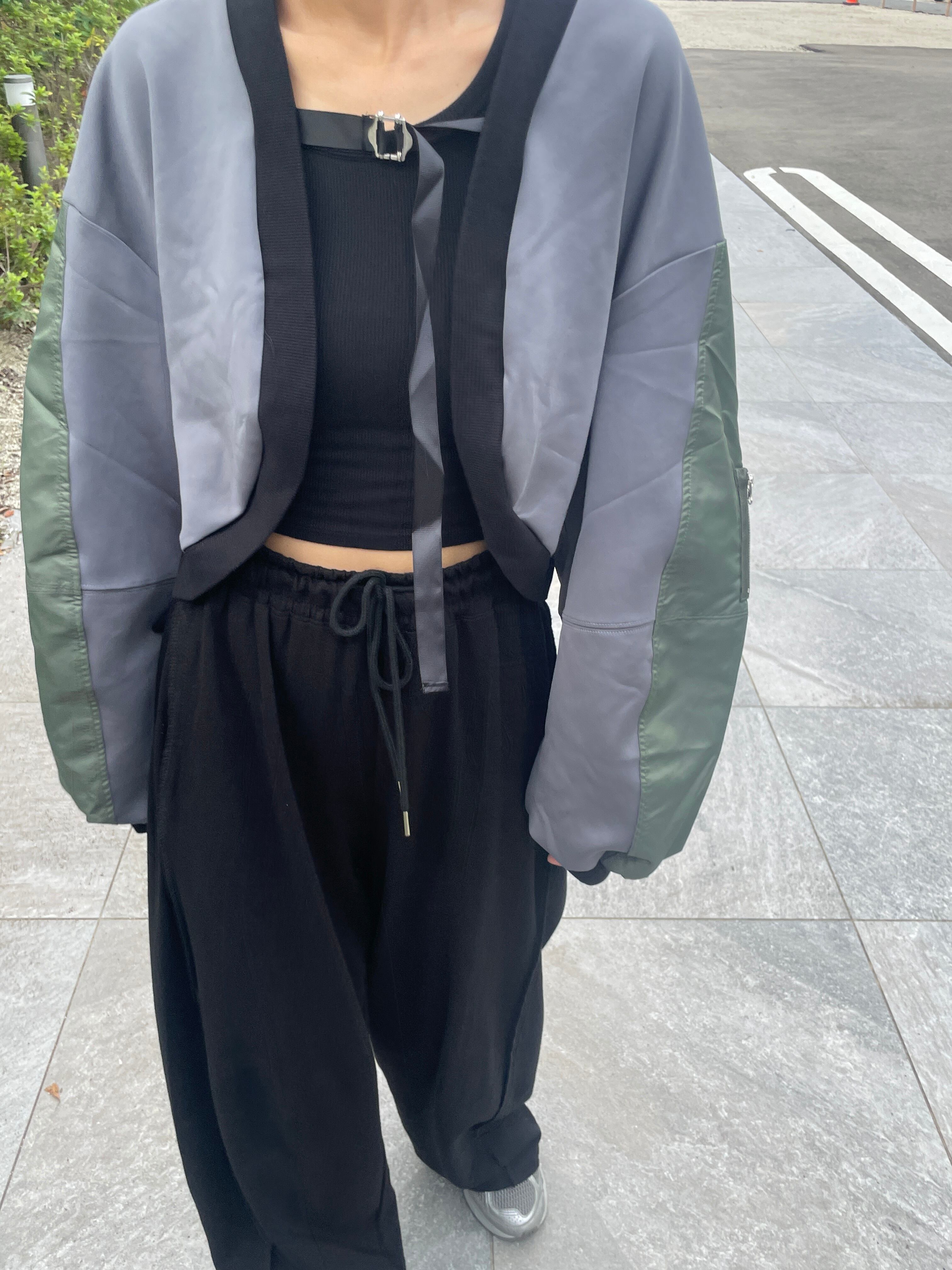 異素材ボレロブルゾンジャージ×ナイロン素材をドッキングしたブルゾン。