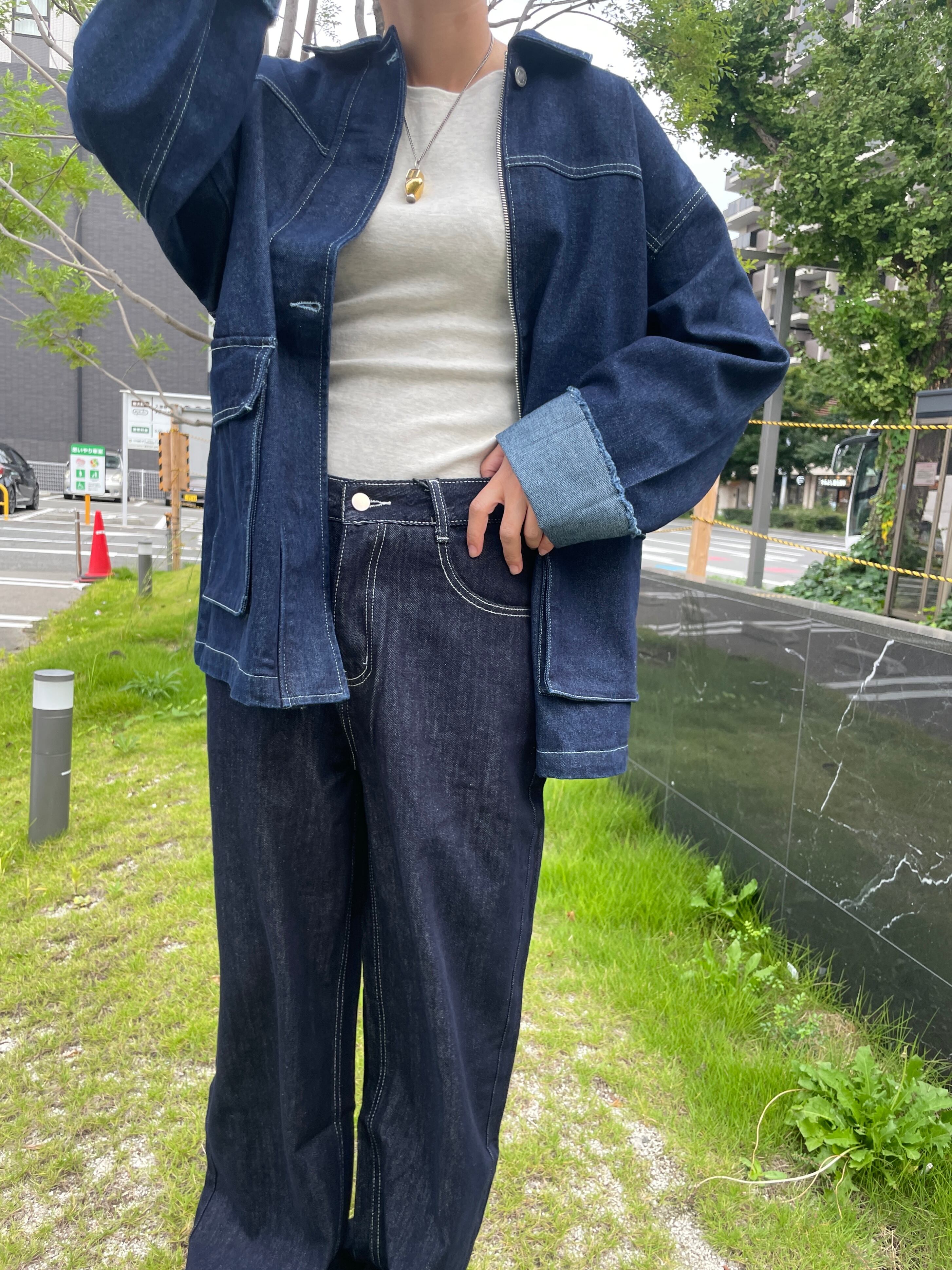 程よい厚みでストレスフリーに着用いただけるデニム生地を使用 ・ベーシックなシルエットと程よい丈感で、幅広いスタイリングをお楽しみいただけます