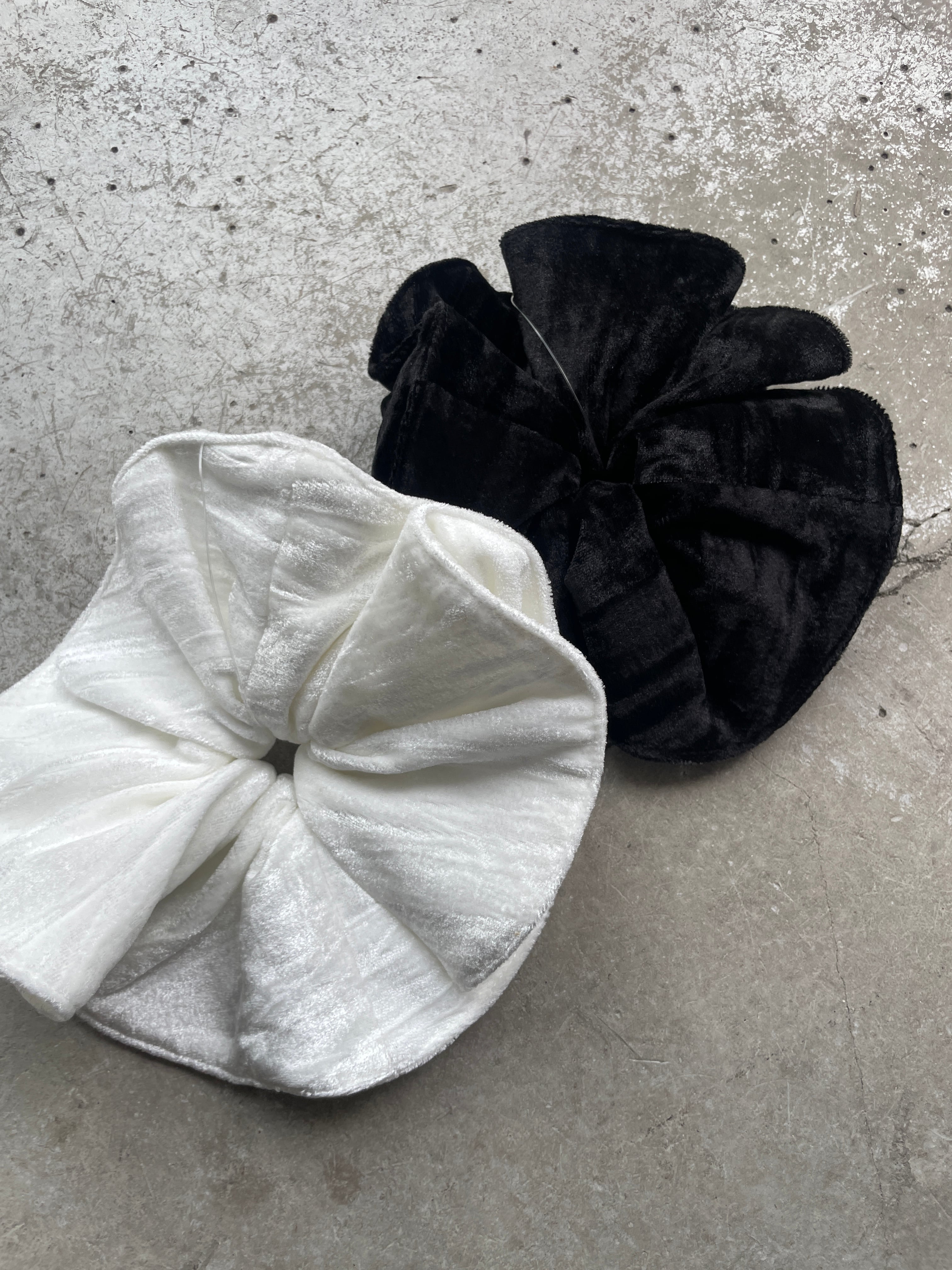 やわらかい手触りと上品な光沢感が魅力のベロアシュシュ