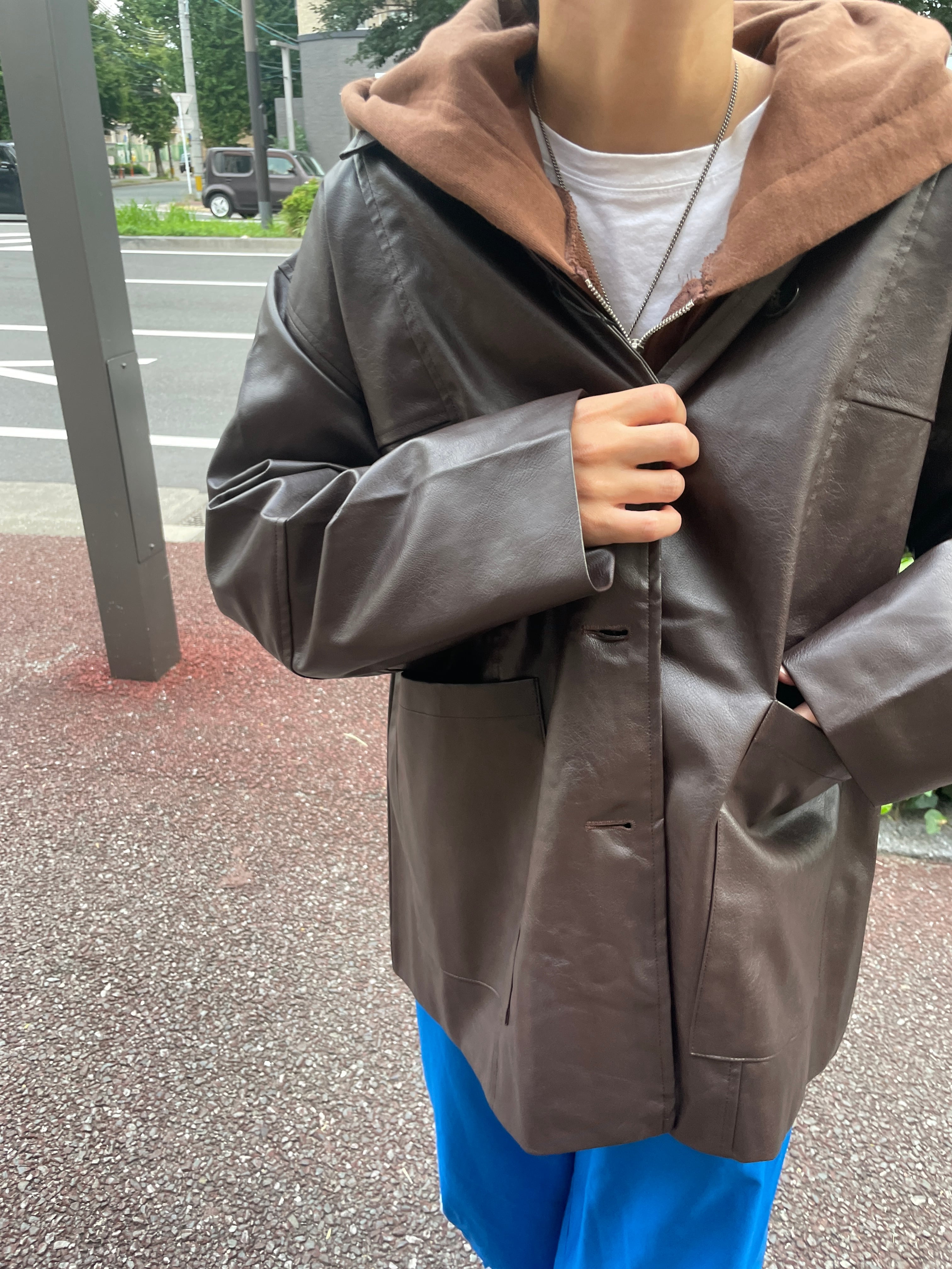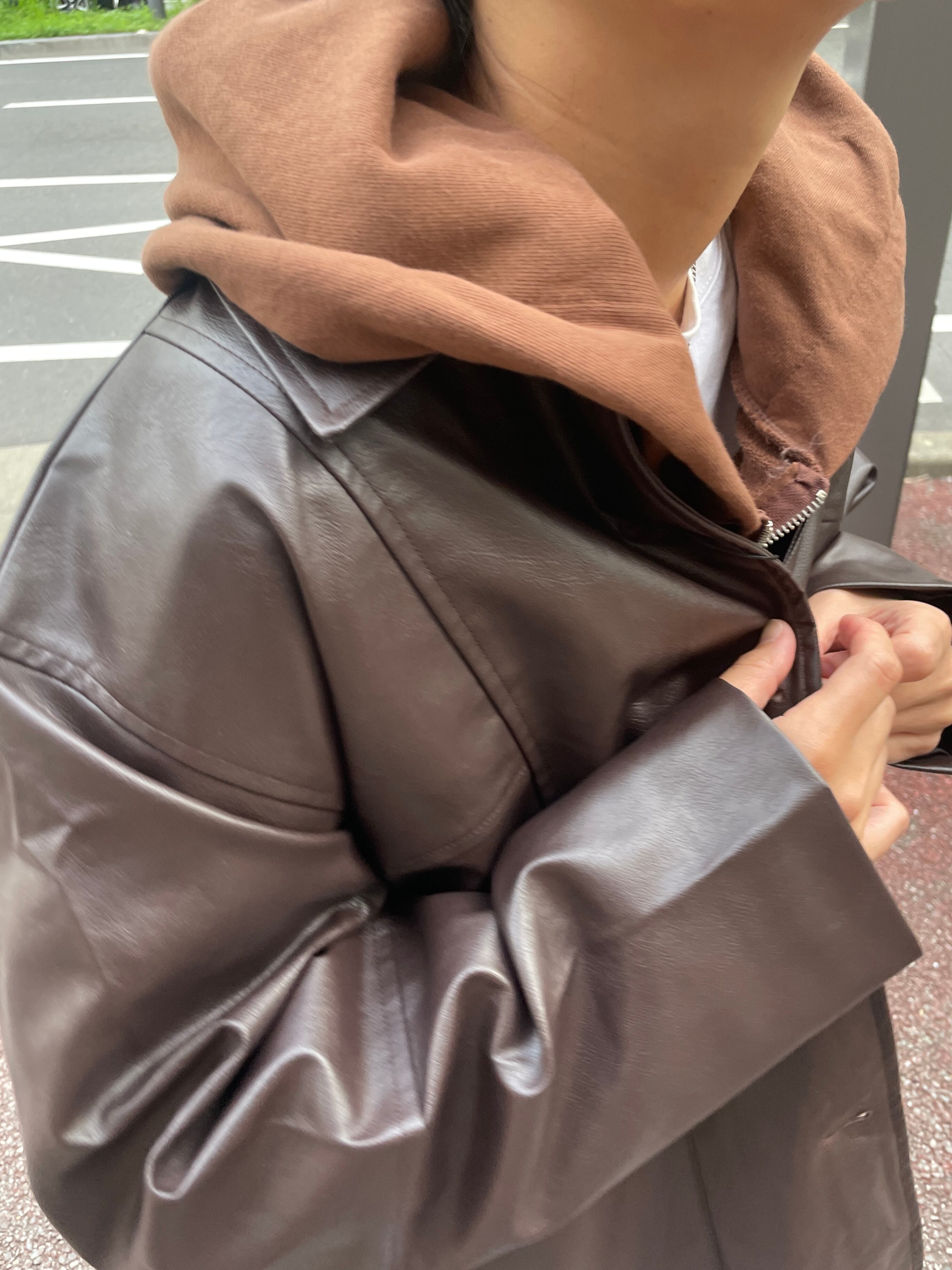 程よい質感のフェイクレザー素材で、シックな印象をプラス