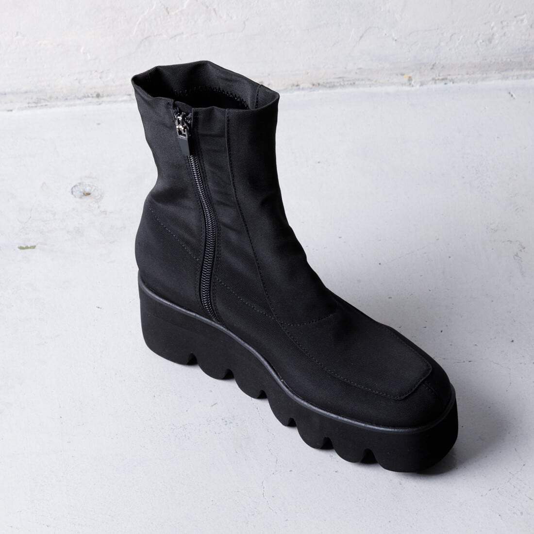 撥水厚底ストレッチショートブーツ