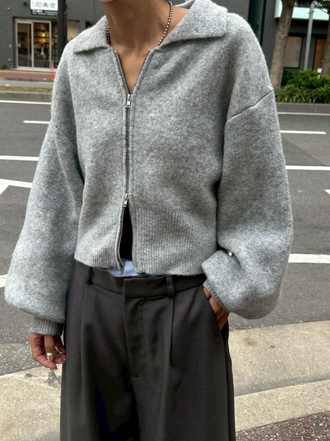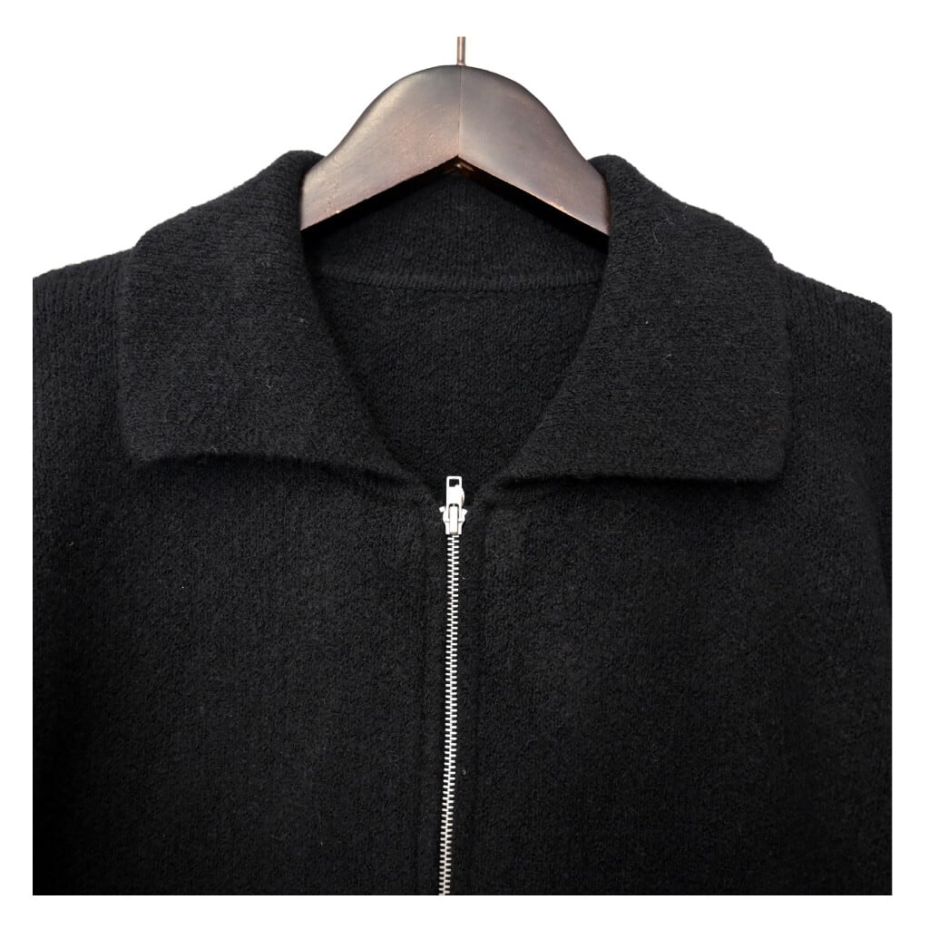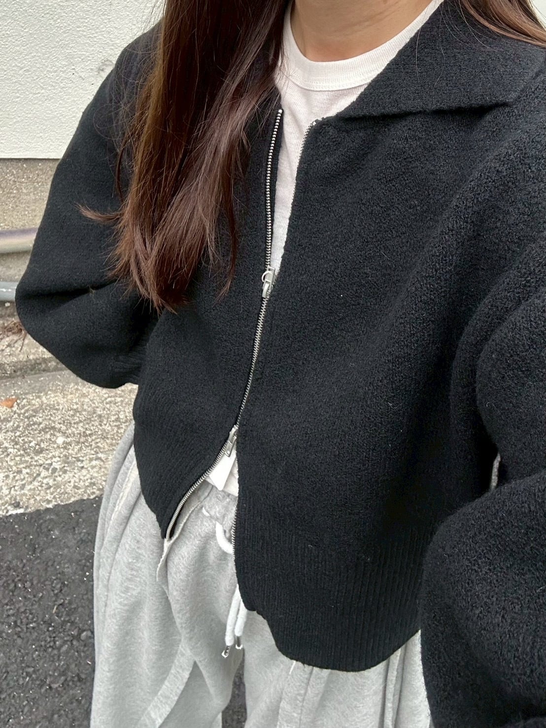 ※7G無地ジャガードニット ダブルジップ カーディガン