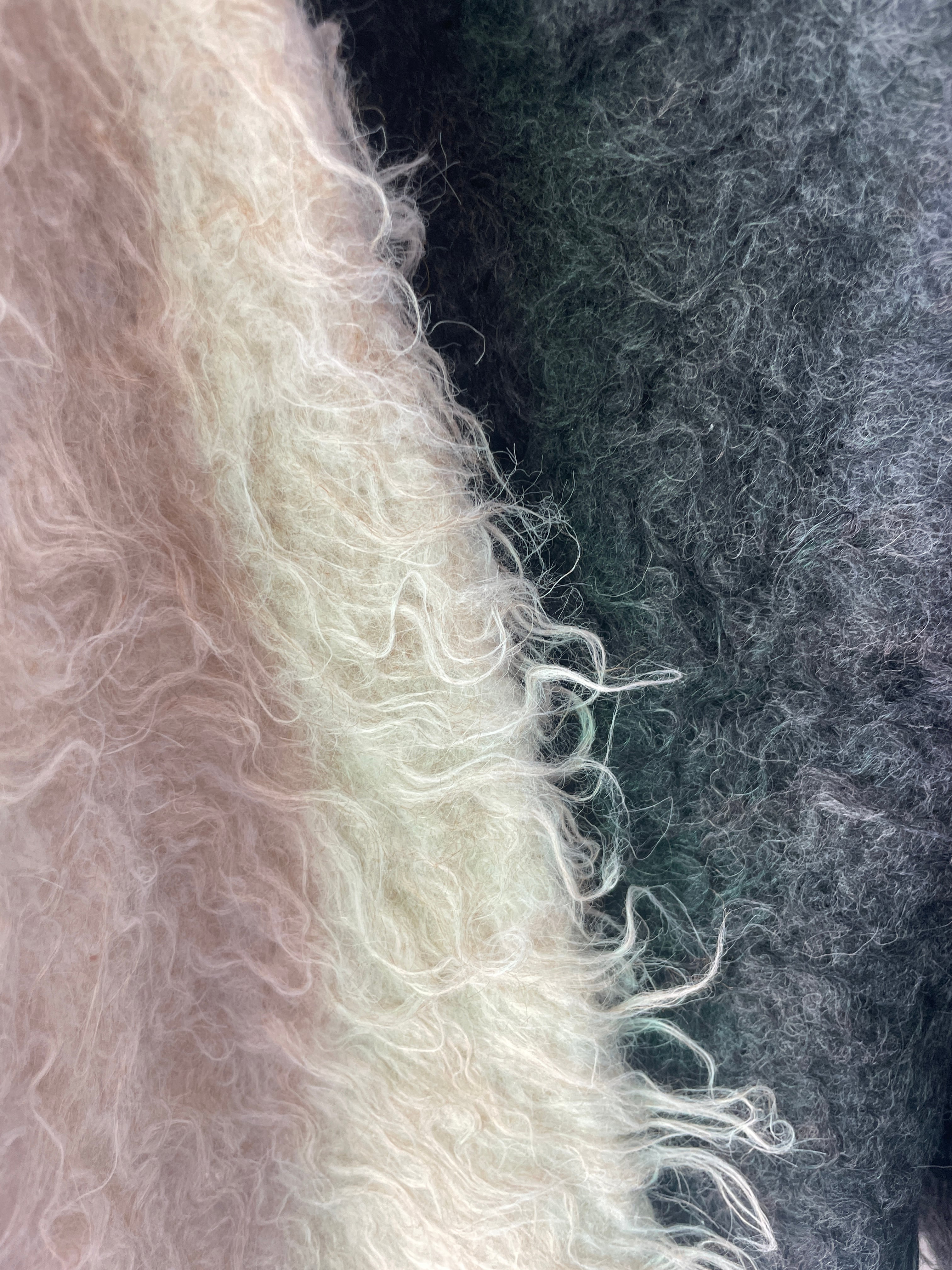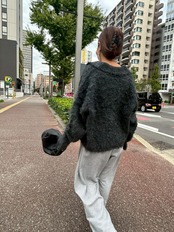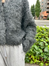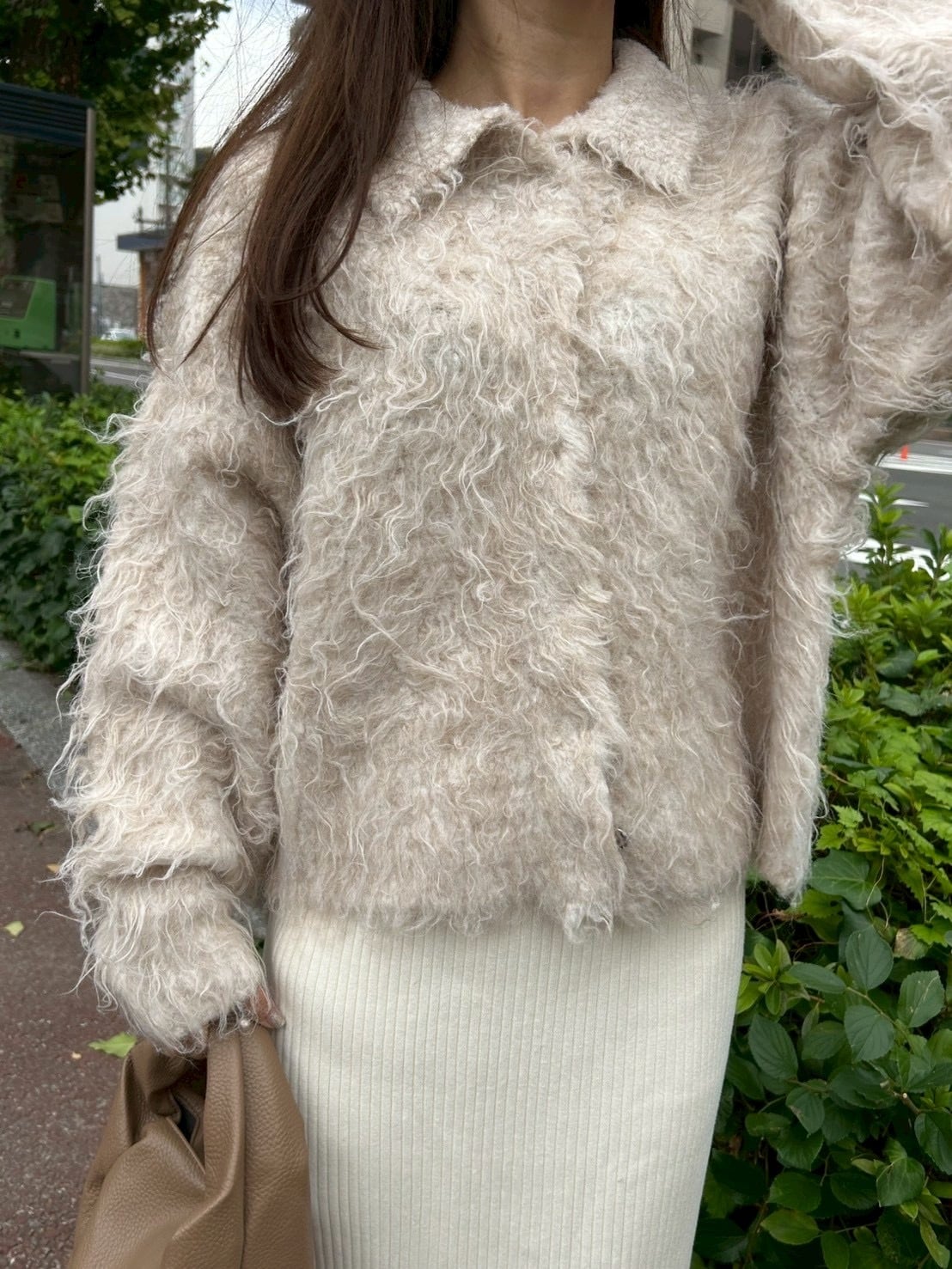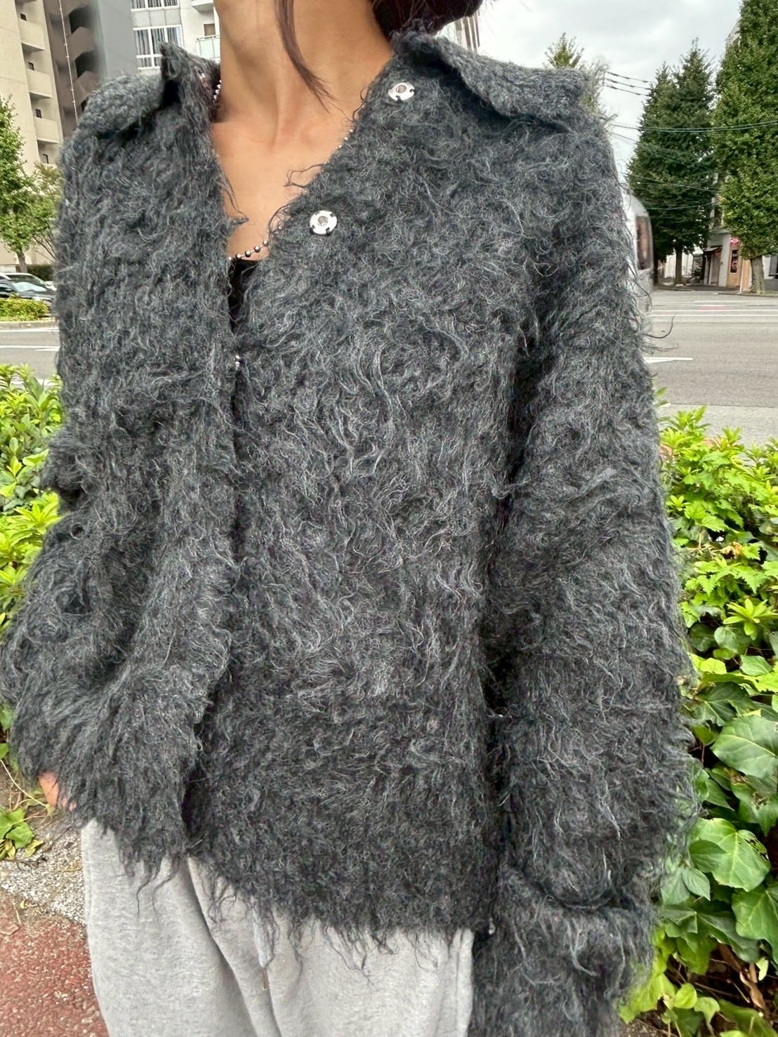 温かみのある起毛ミックスシャギー素材のポロニットカーディガンサッと羽織るだけで一気にシーズンムードを上げてくれる1枚