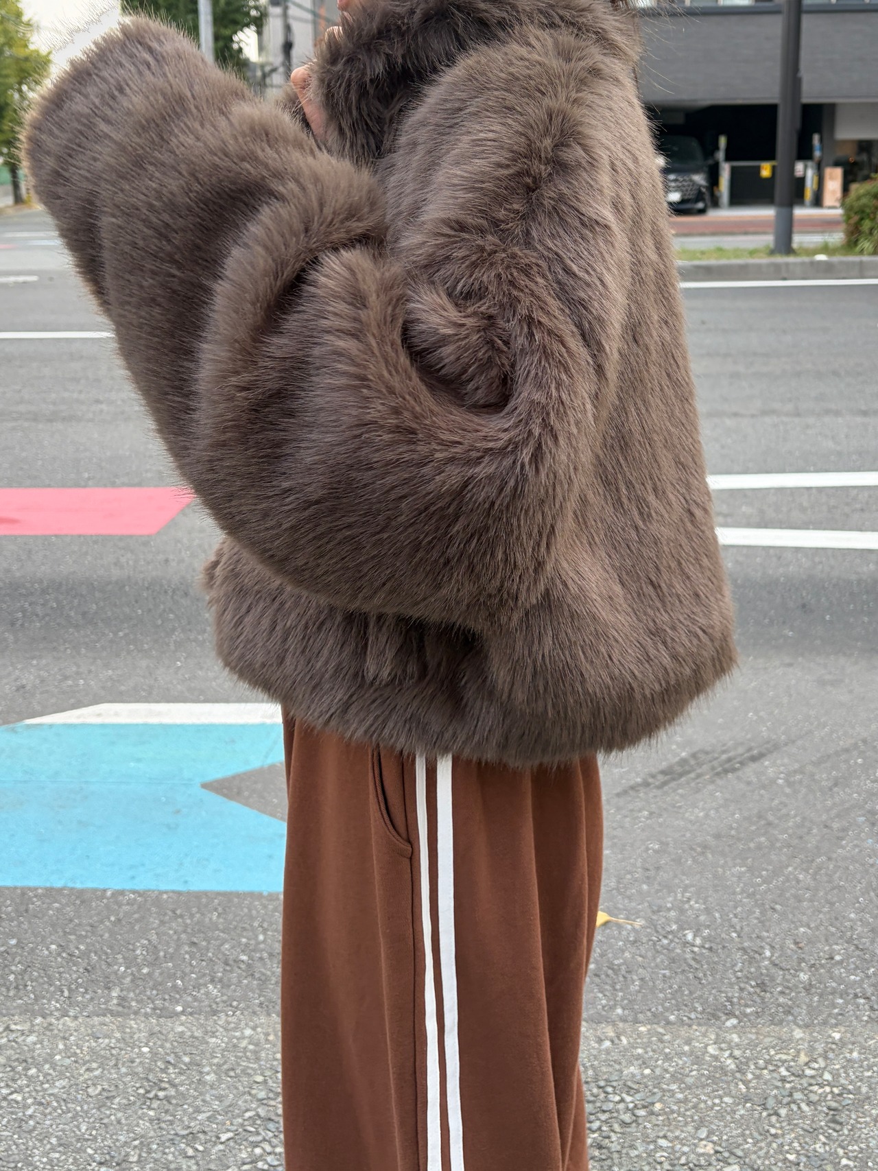 軽やかな着心地が魅力のフェイクファー素材を使用