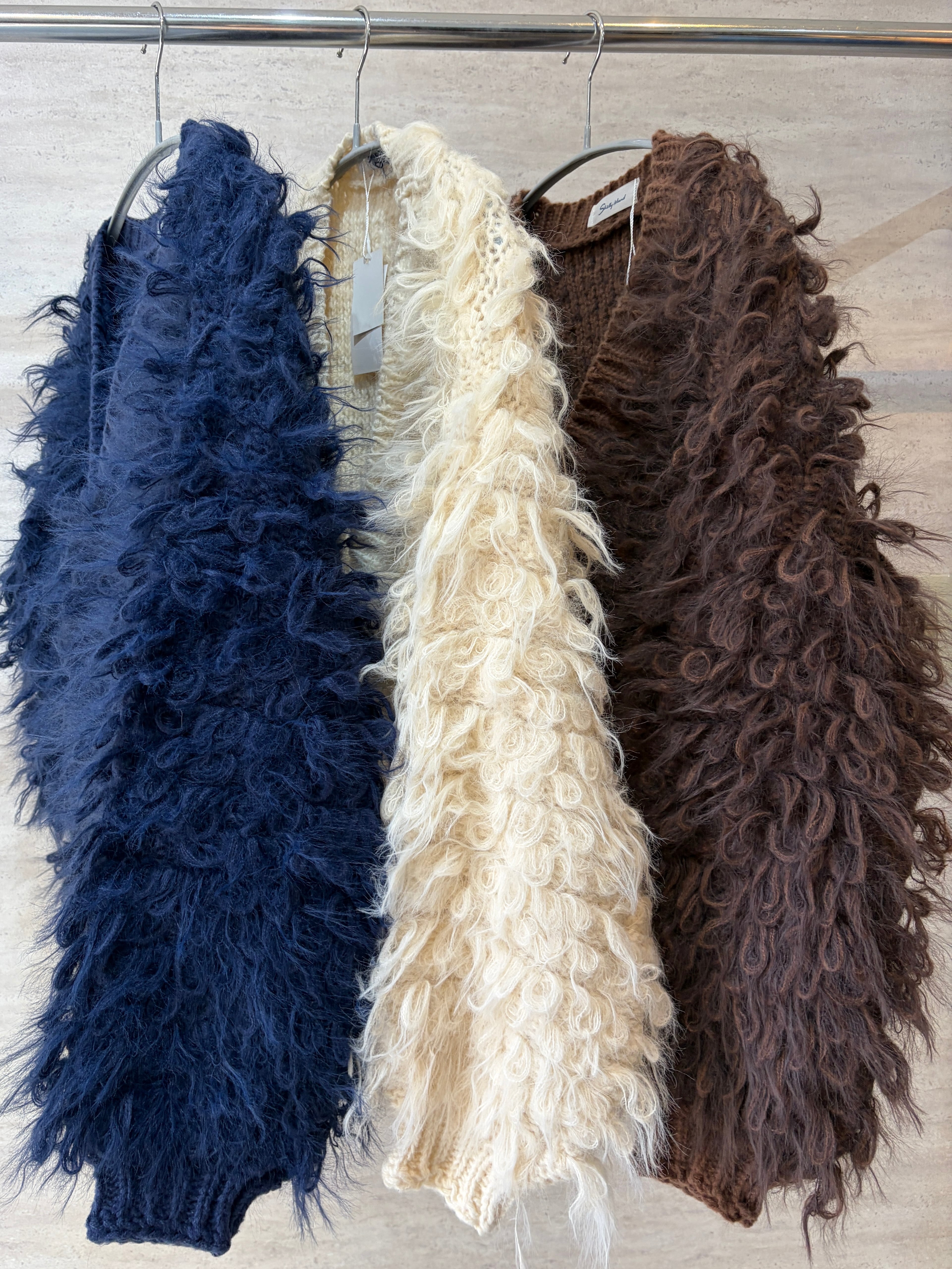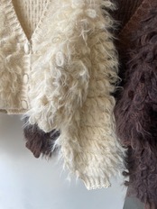 ・ふわっと柔らかく、立体感のあるループ編みが魅力のニットカーディガン