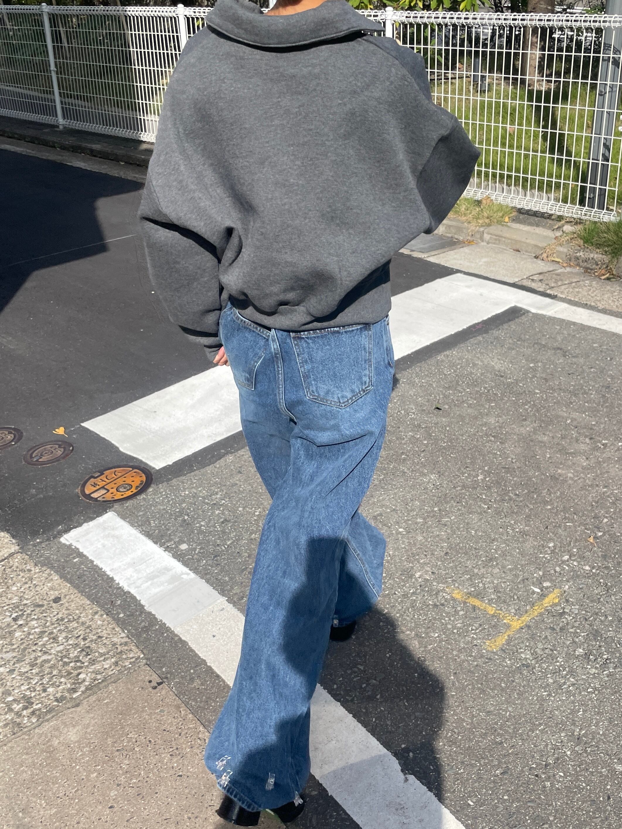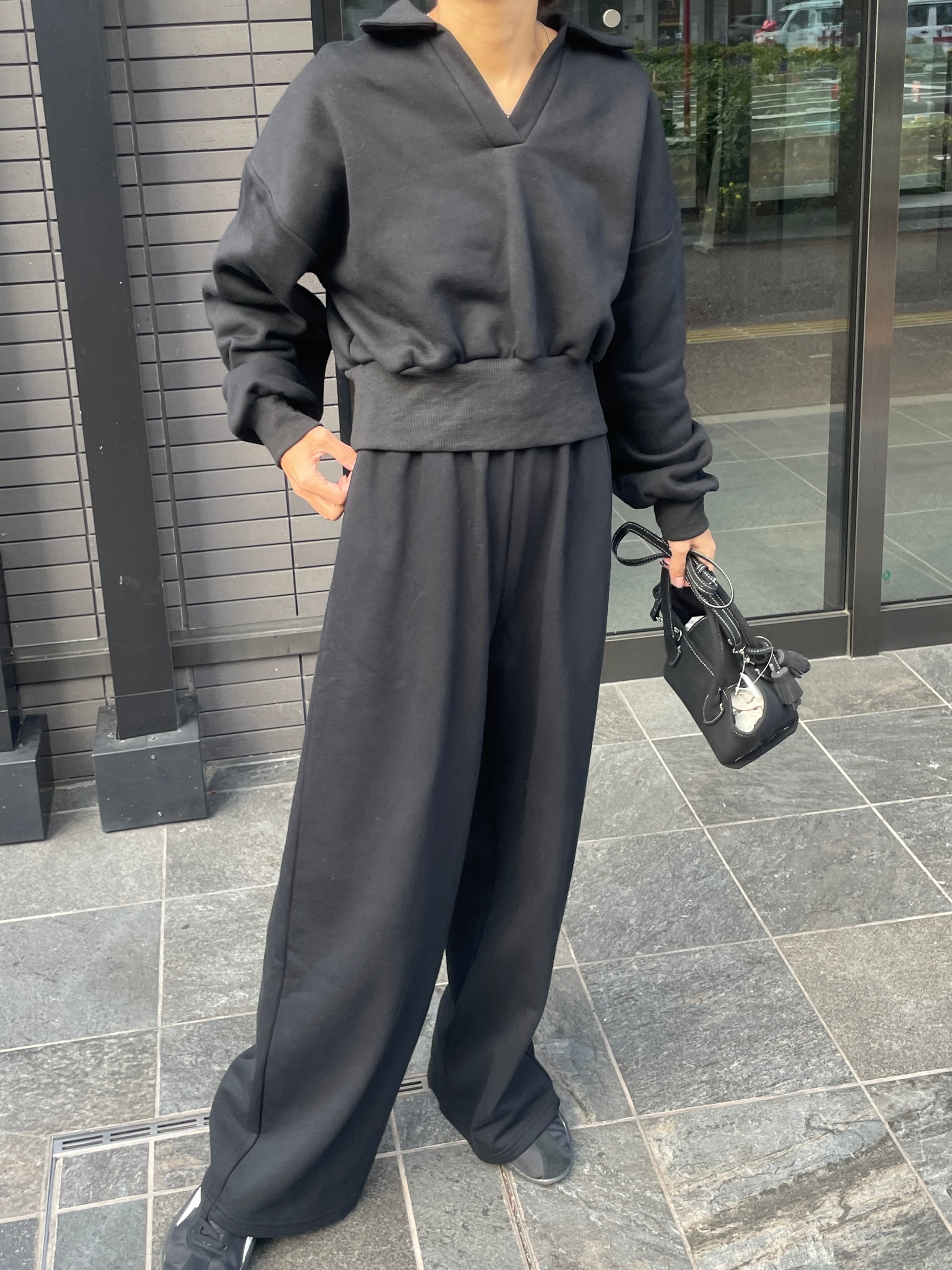 ほどよい抜け感のあるキーネックデザインがポイントの裏起毛プルオーバー