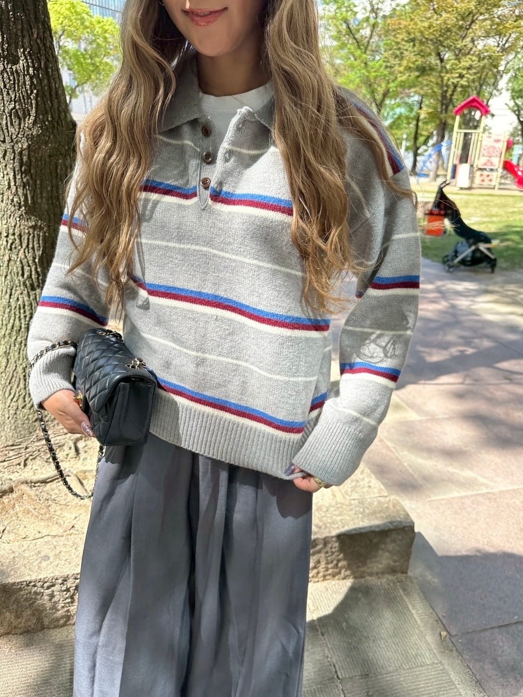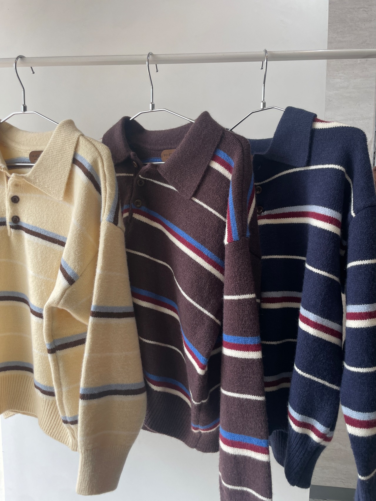 ボーダー襟付きニット