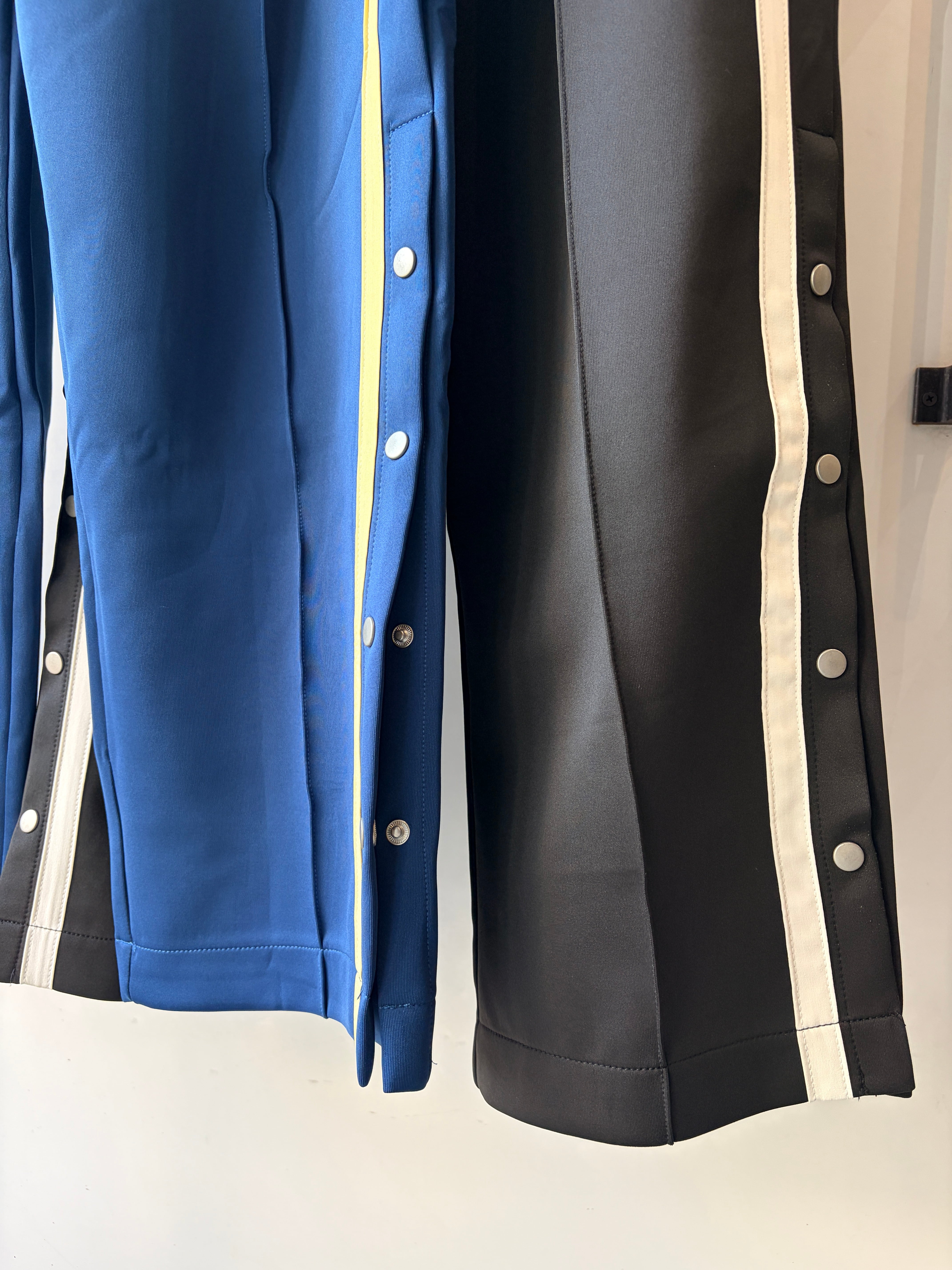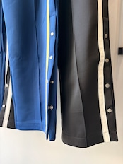 サイドの配色ラインとボタンディテールがアクセントになり、脚長効果抜群