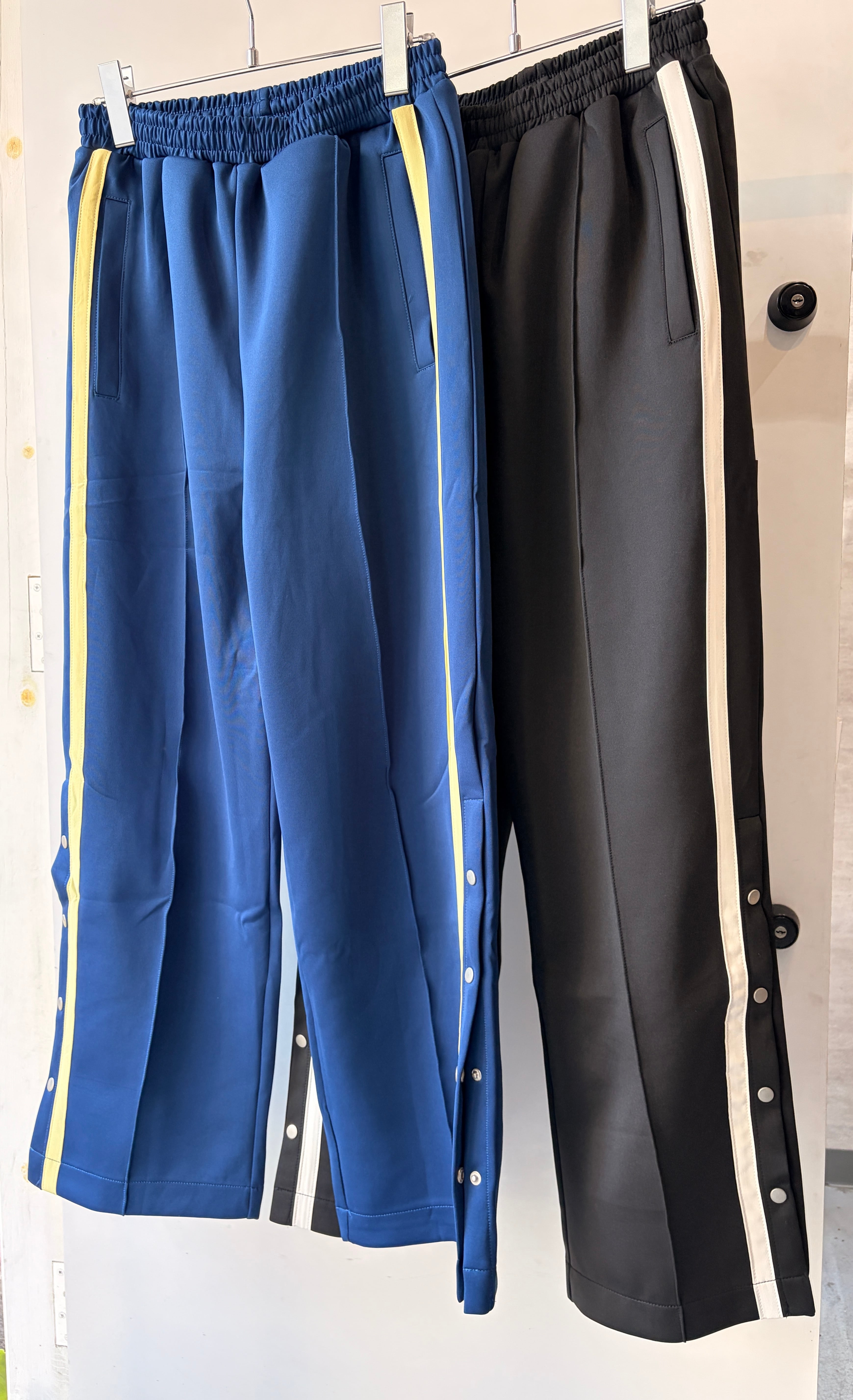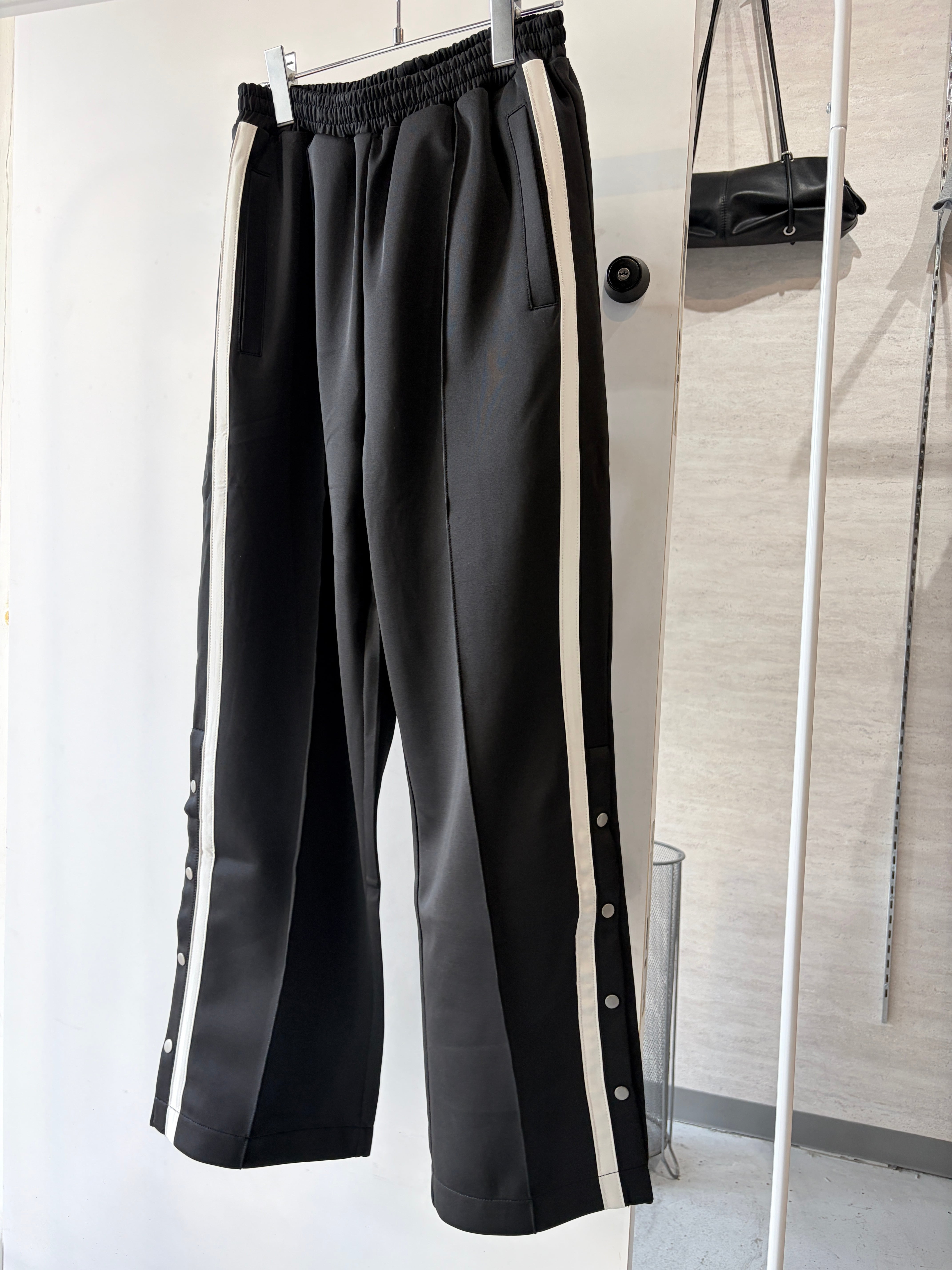 異素材ラインが映える、トレンド感たっぷりの脇釦ワイドパンツ