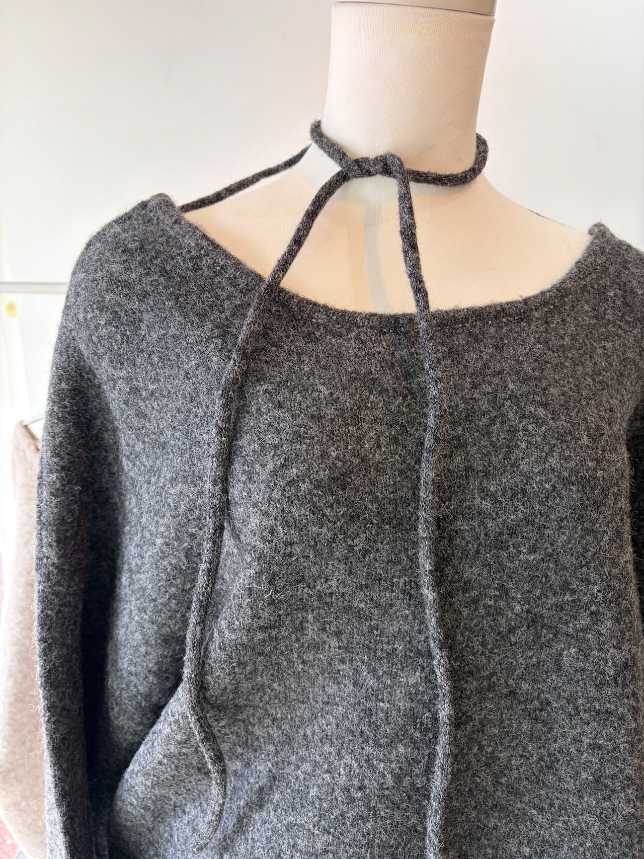 ゆったりしたVネックトップスと同素材のチョーカーがつき
