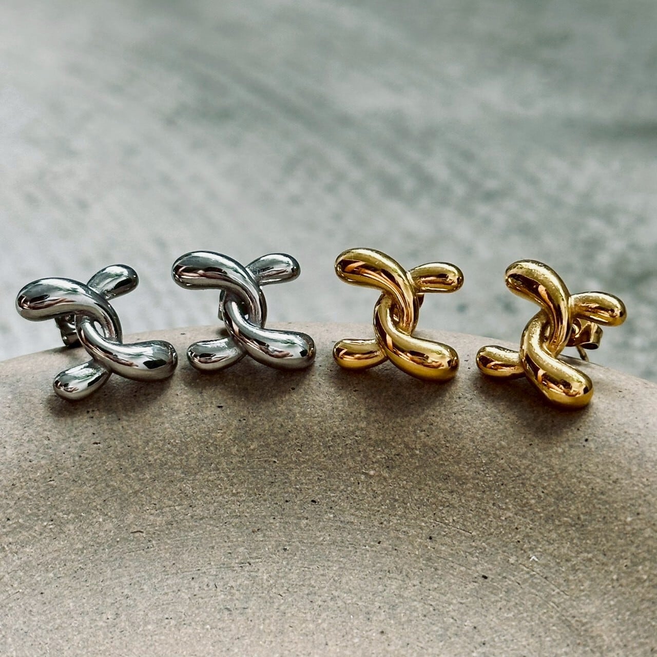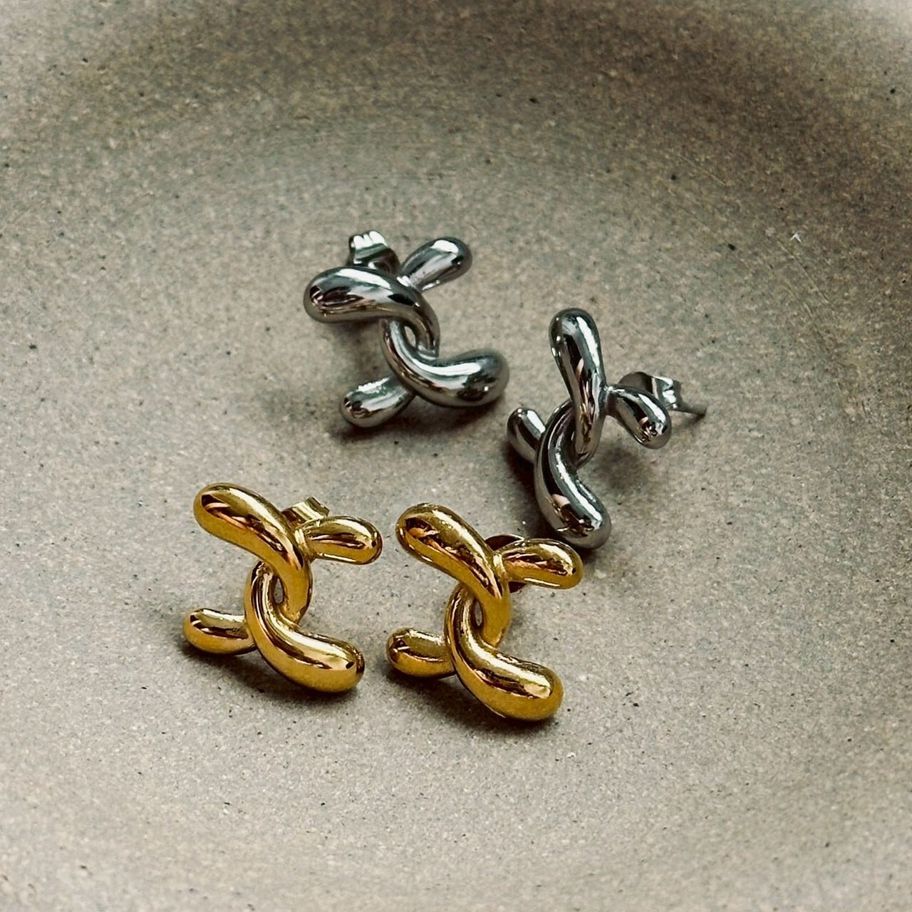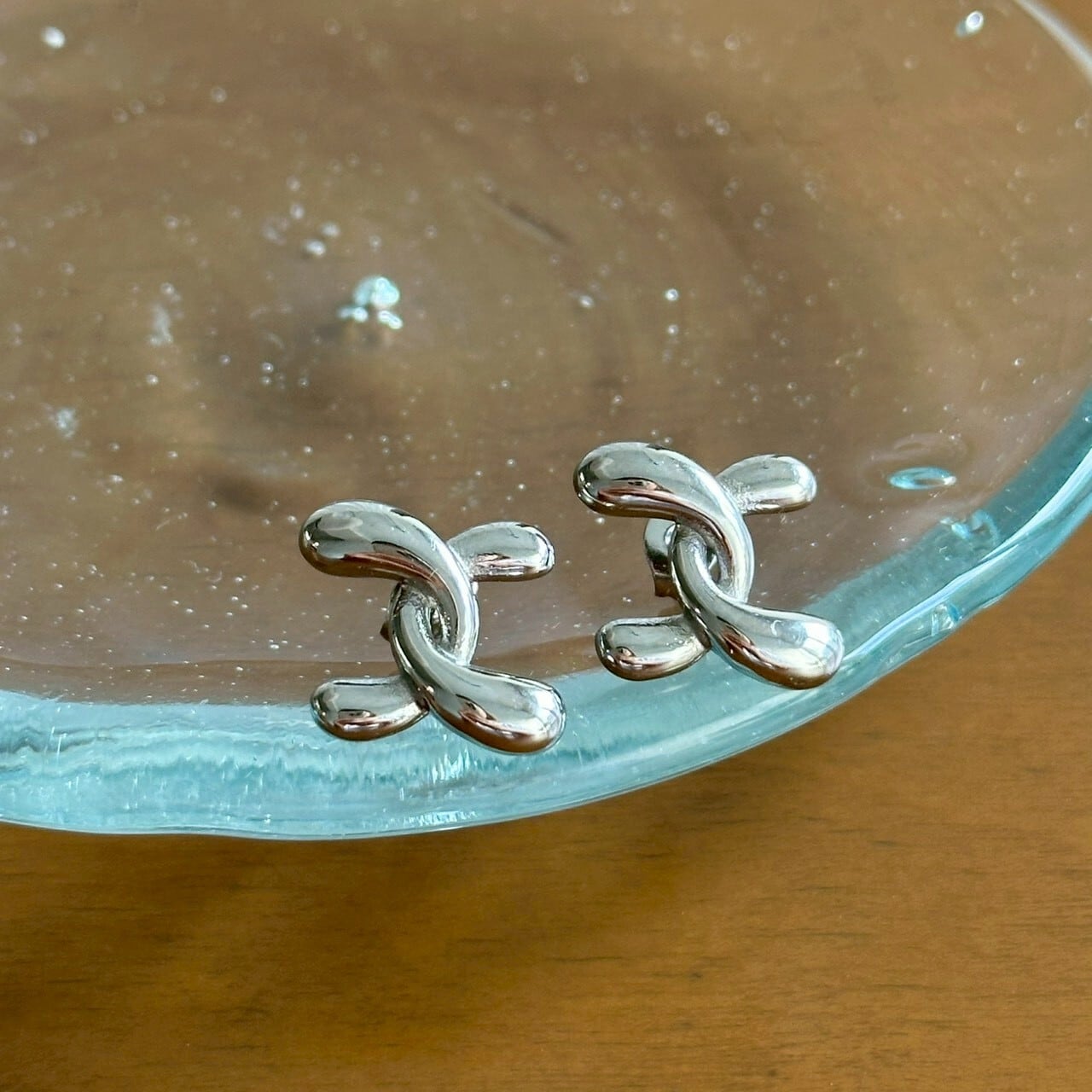 耳元にさりげない華やかさを添える、ツイストデザインのサージカルステンレスピアス