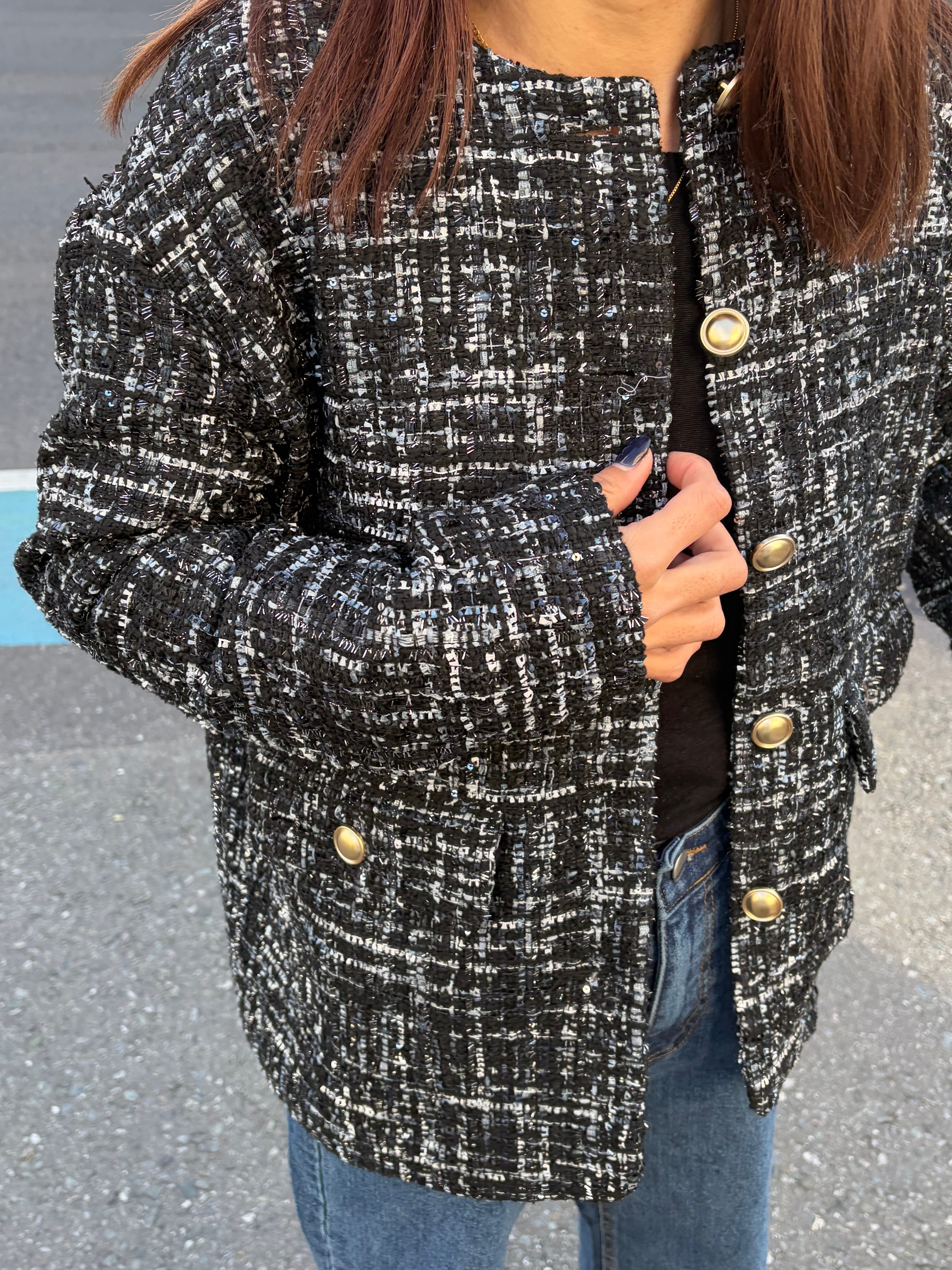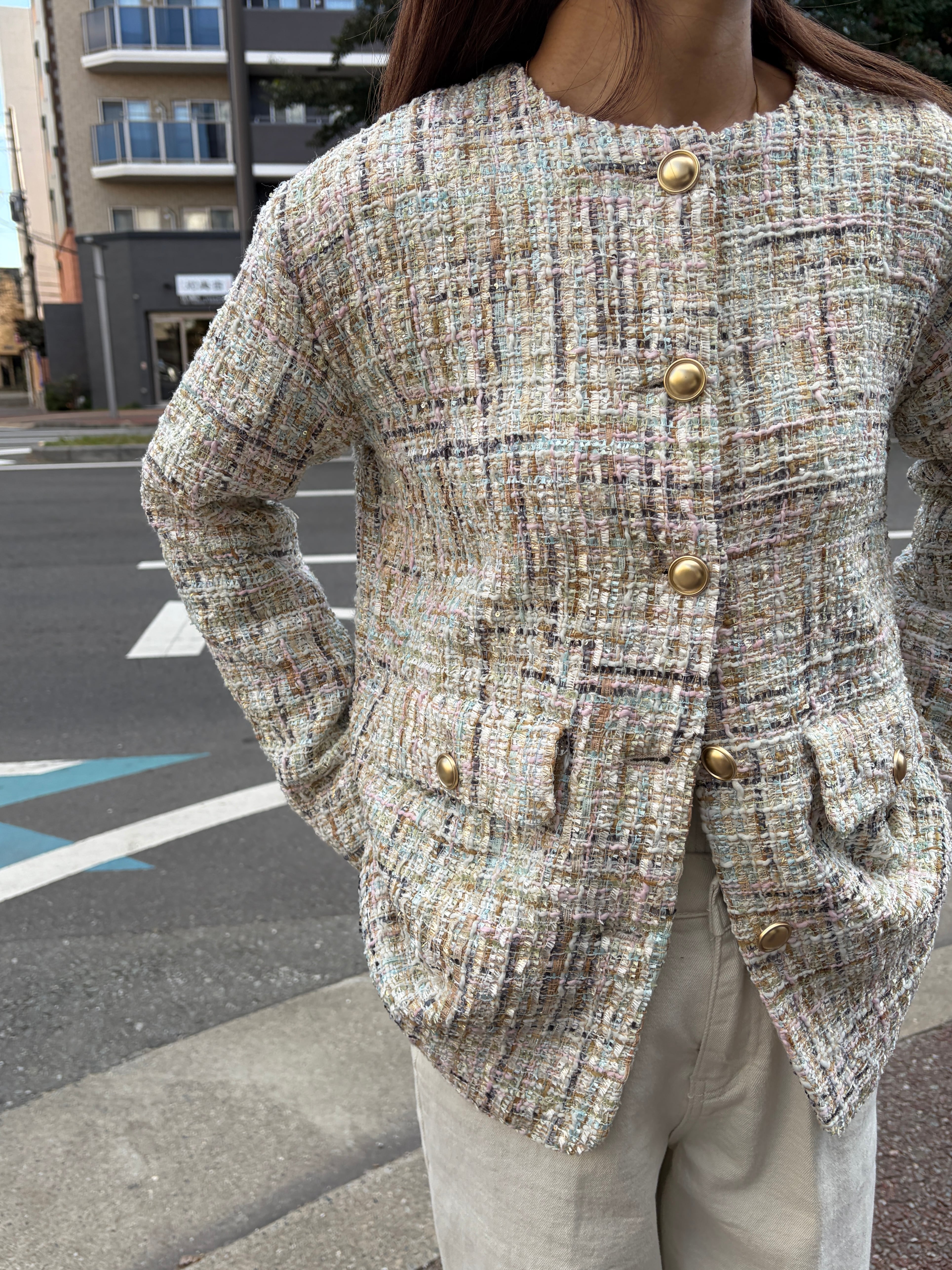 ツイードxチュール レイヤード ジャケット