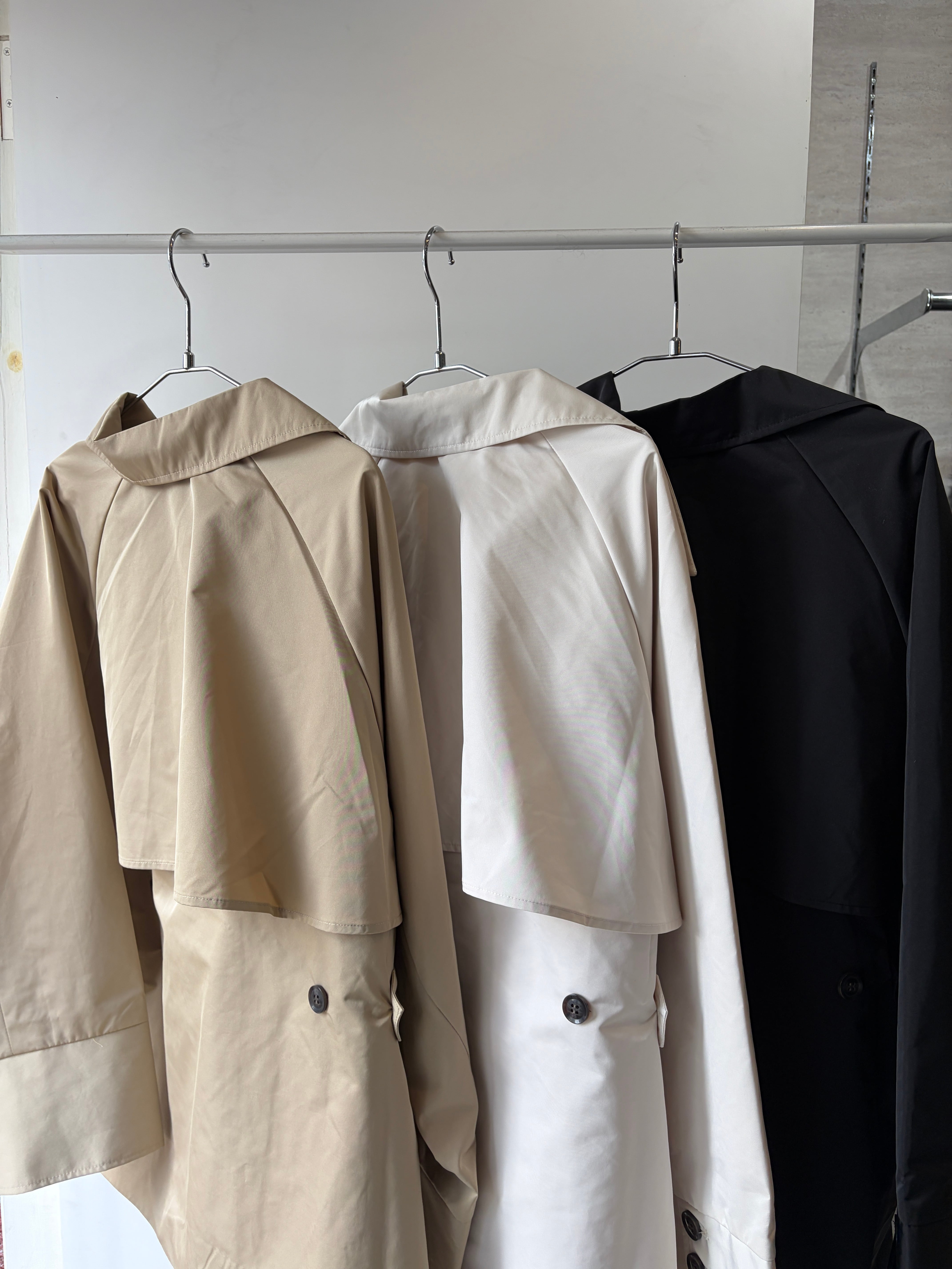 軽やかなナイロン素材を使用した、モダンな印象のトレンチコート