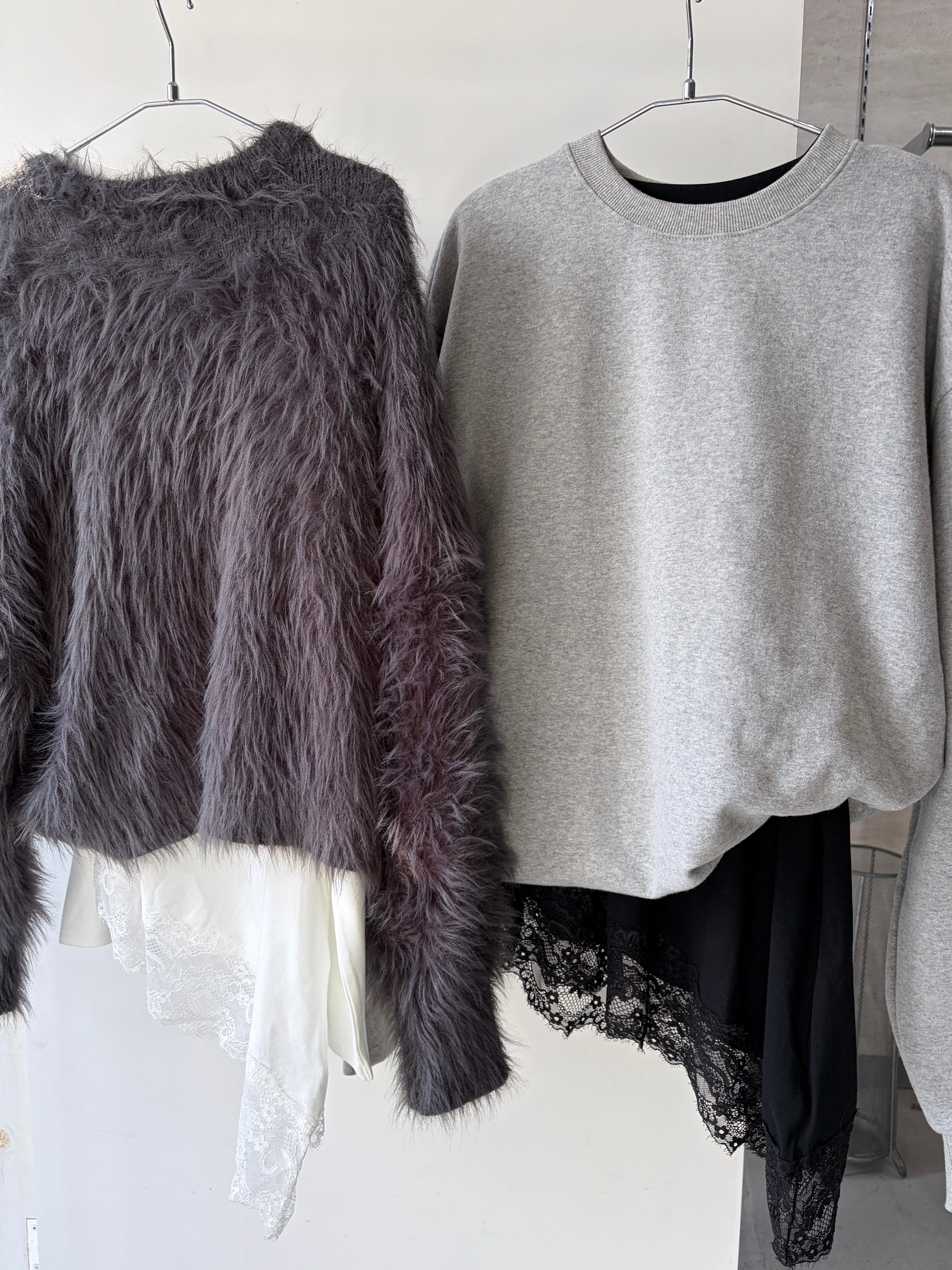 スムース天竺素材のレース付きアシメプルオーバーが登場