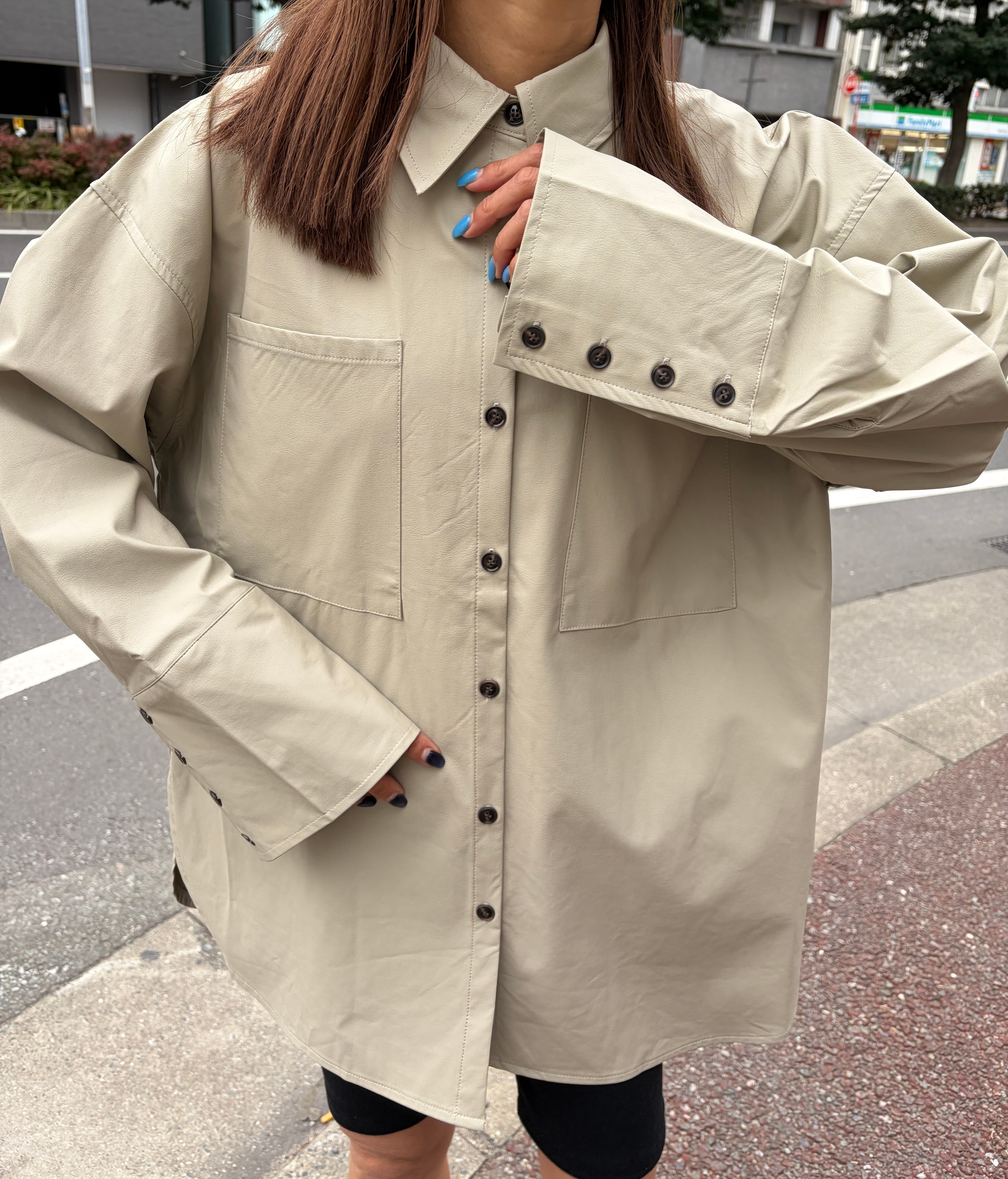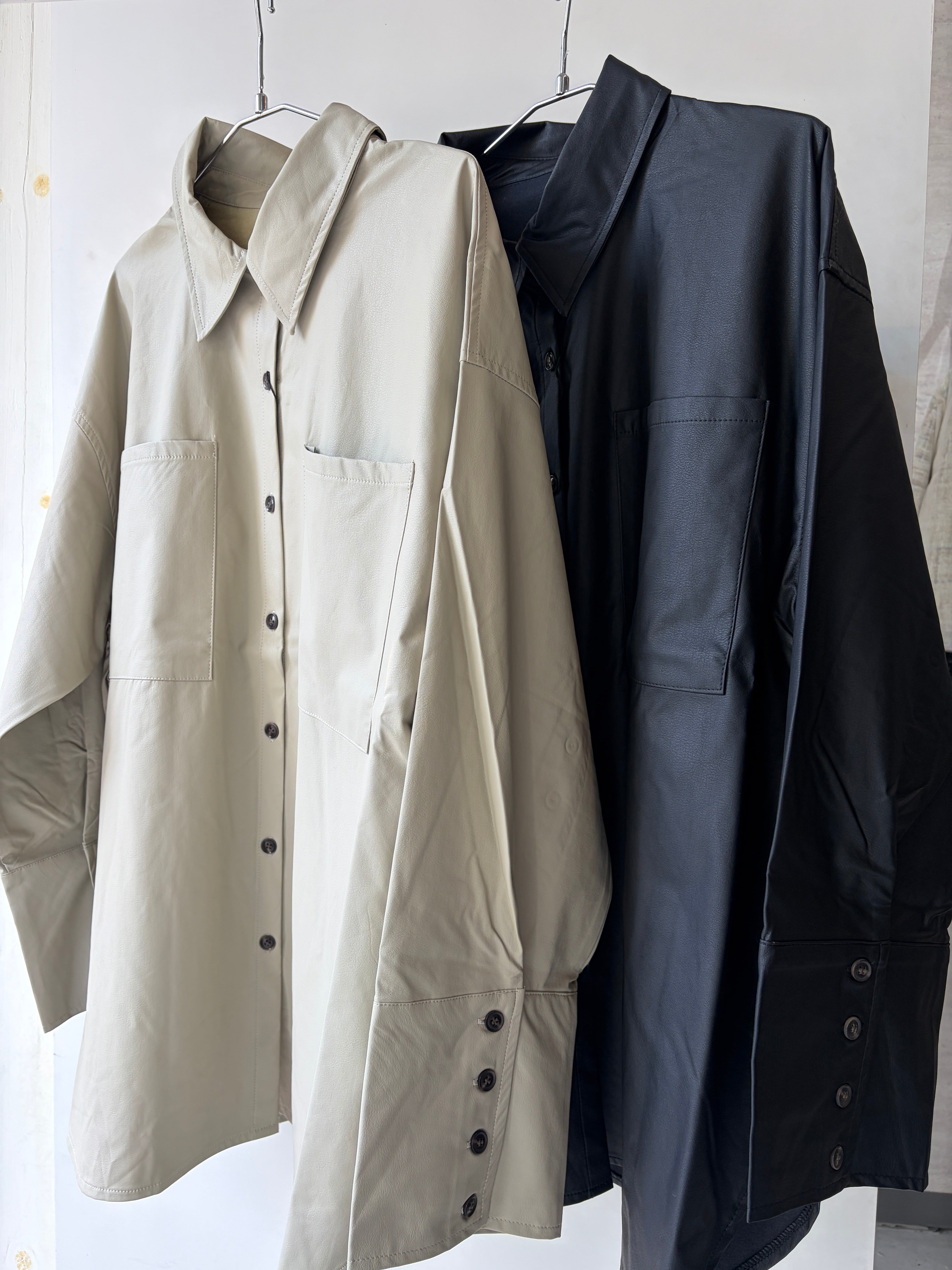 ウォッシャブルフェイクレザーのビックカフスシャツが登場