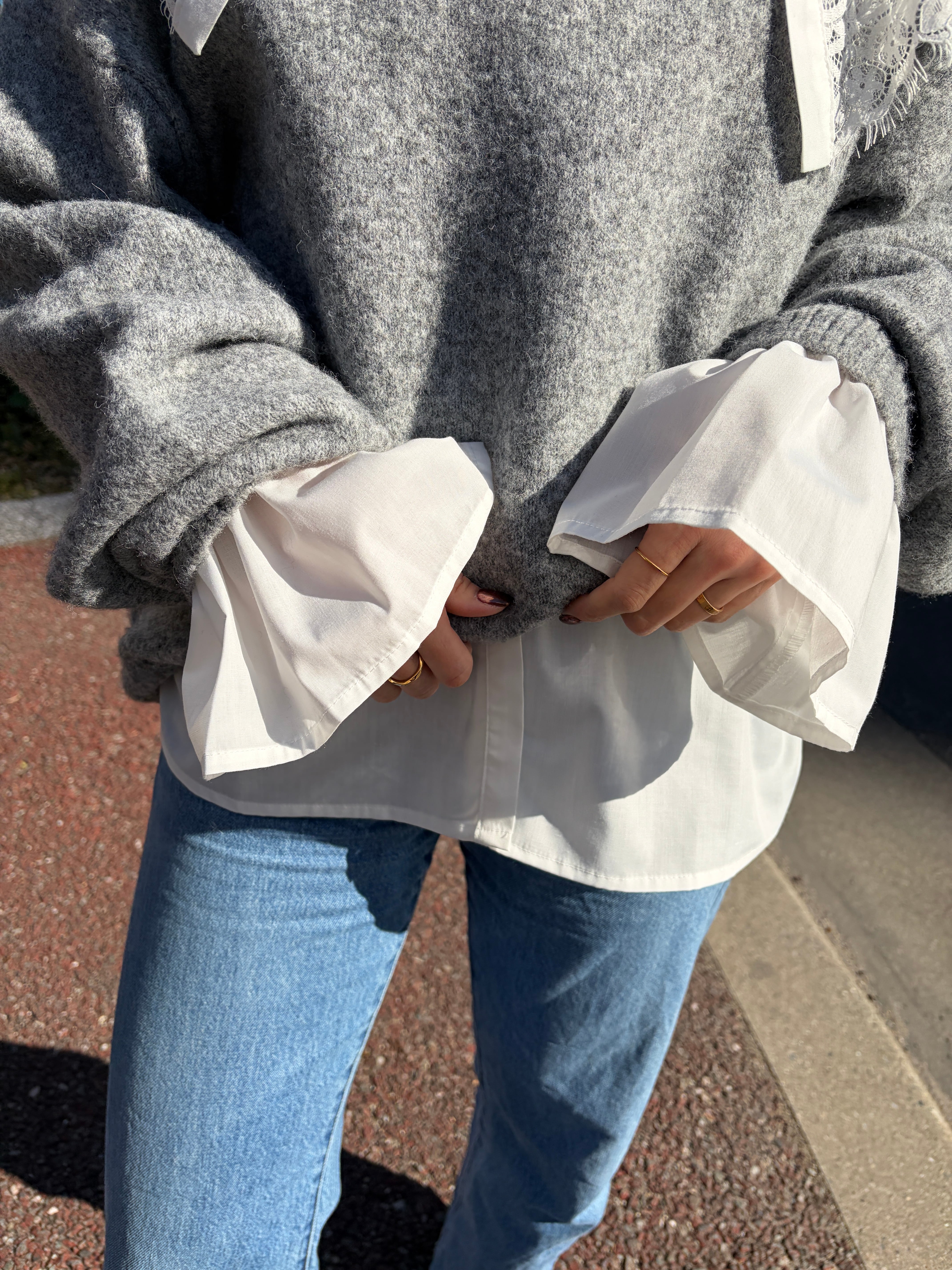 T/Cブロード レース衿 キャンディスリーブ ブラウス