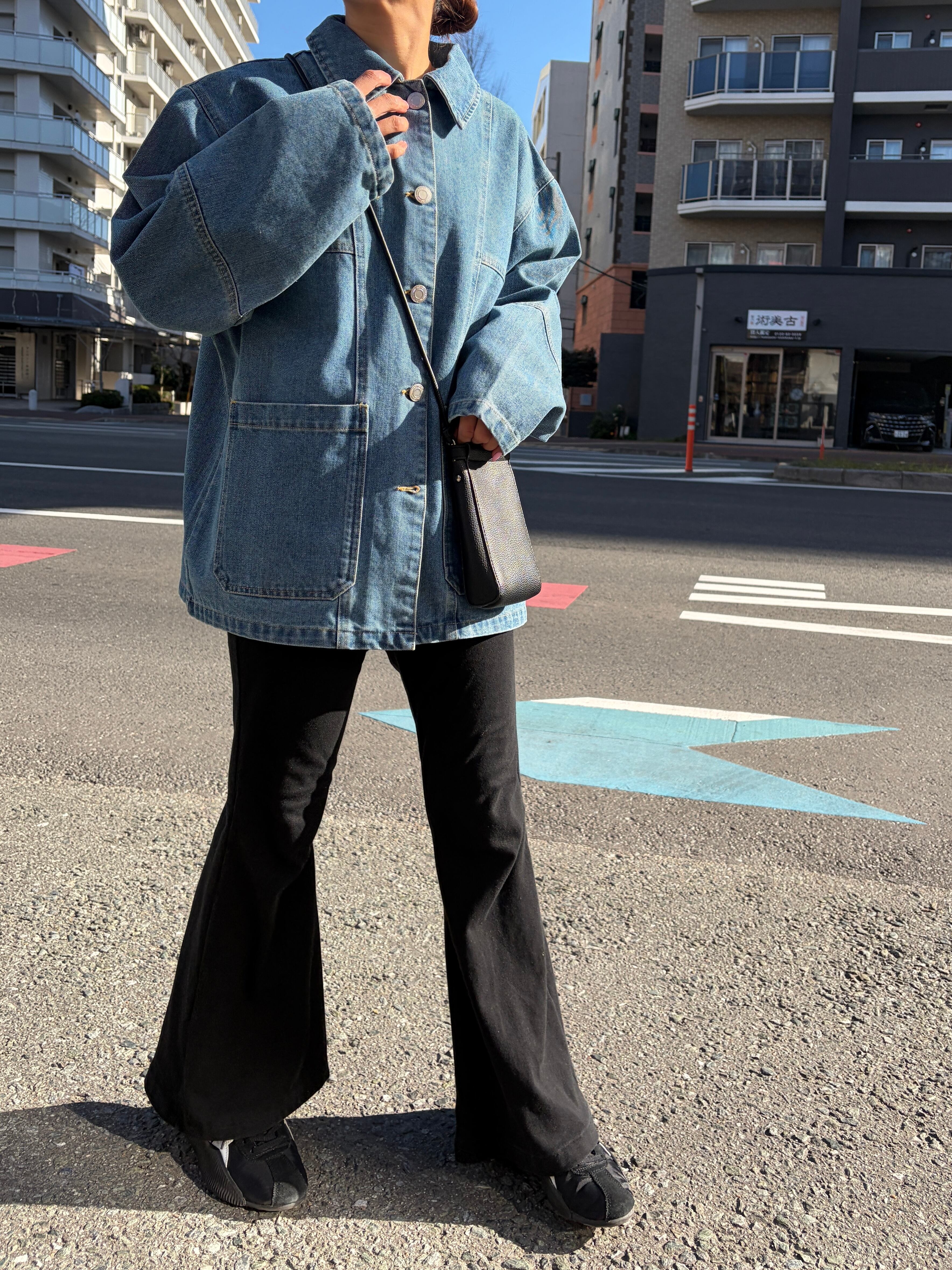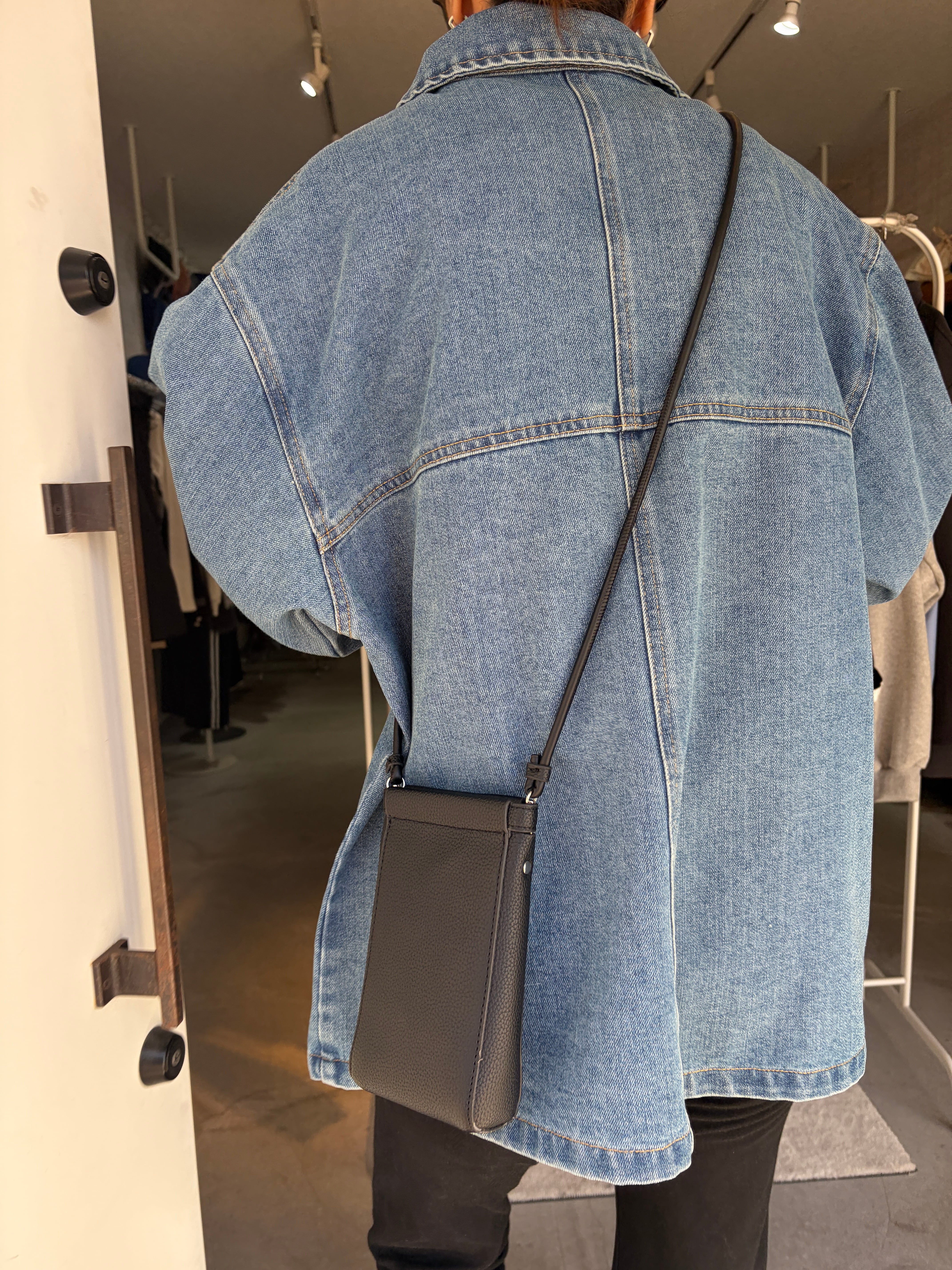 デニムならではの風合いとハリ感を楽しめるオーバーサイズジャケット切り替えデザインが縦のラインを強調して、すっきりとした印象に仕上げます◎