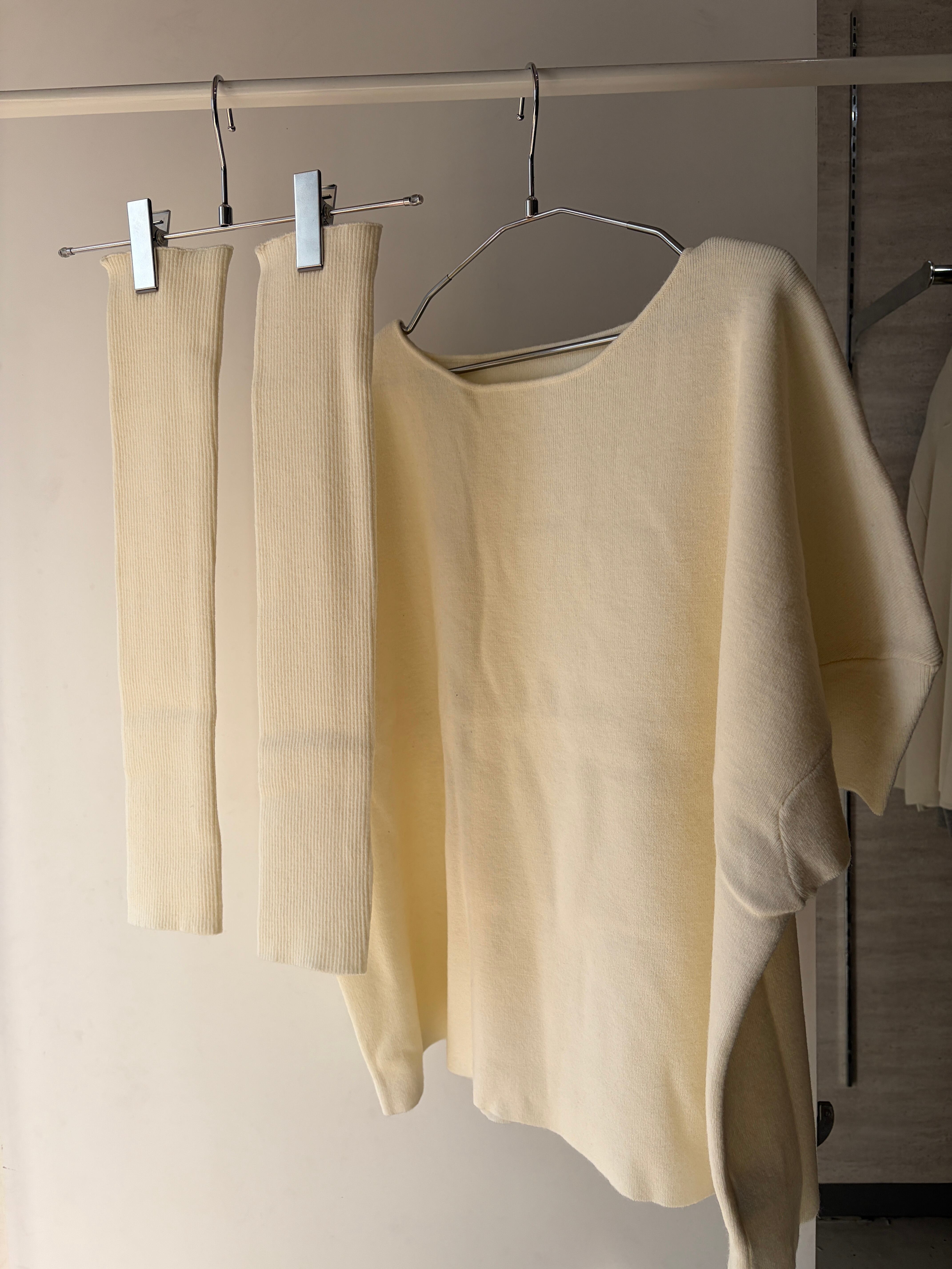 柔らかな立体感を纏う、アームウォーマーとニットのセット
