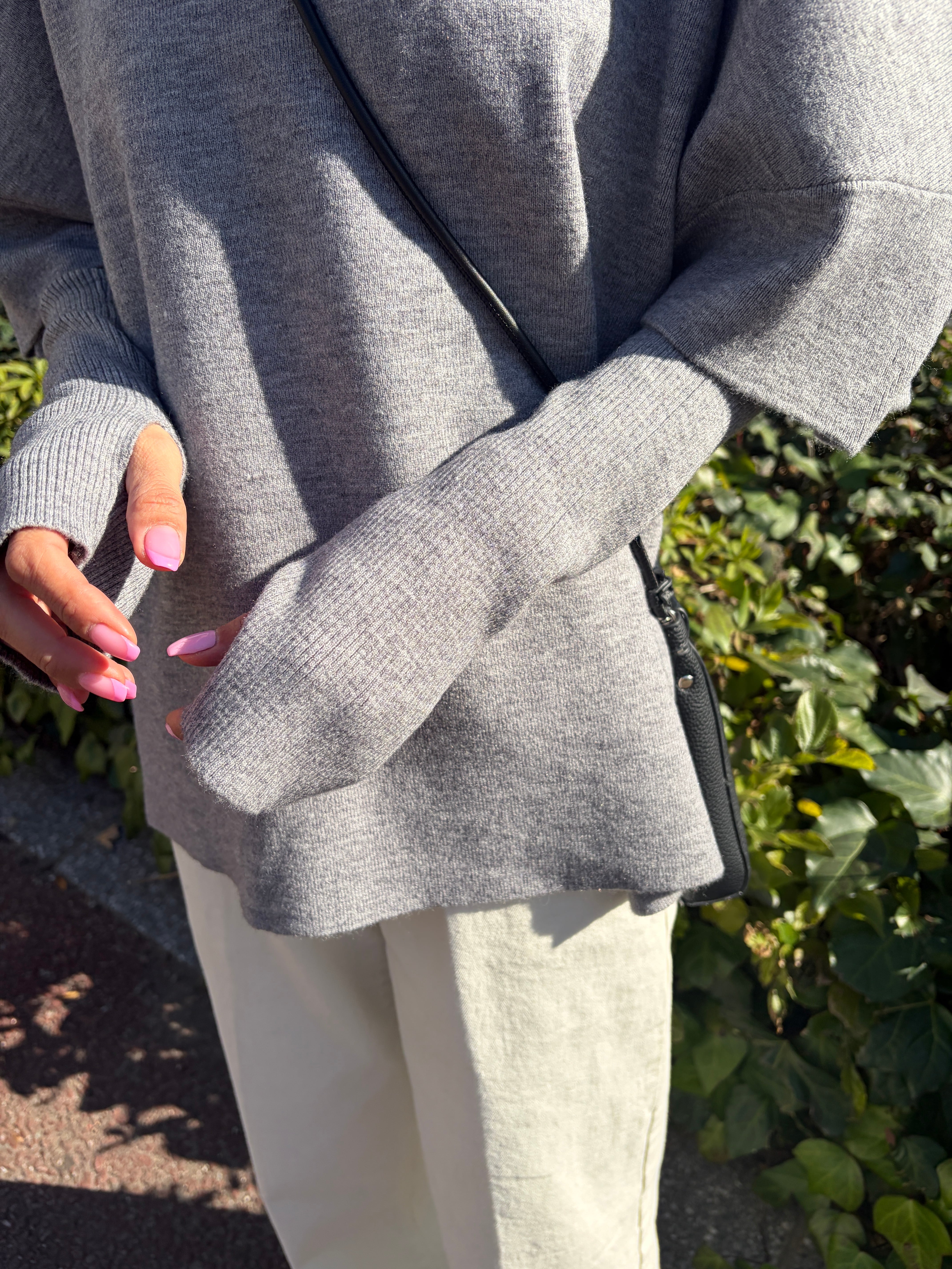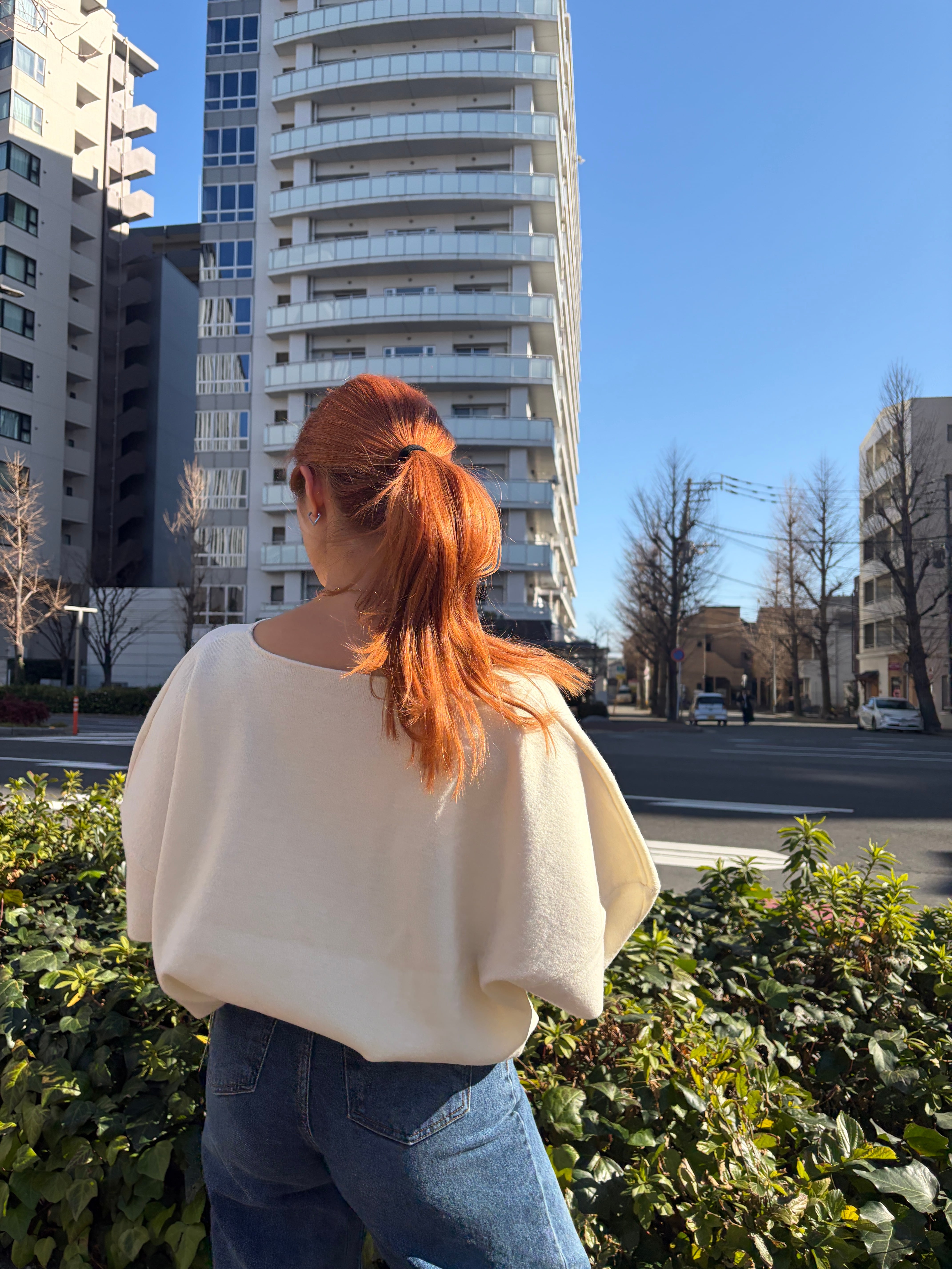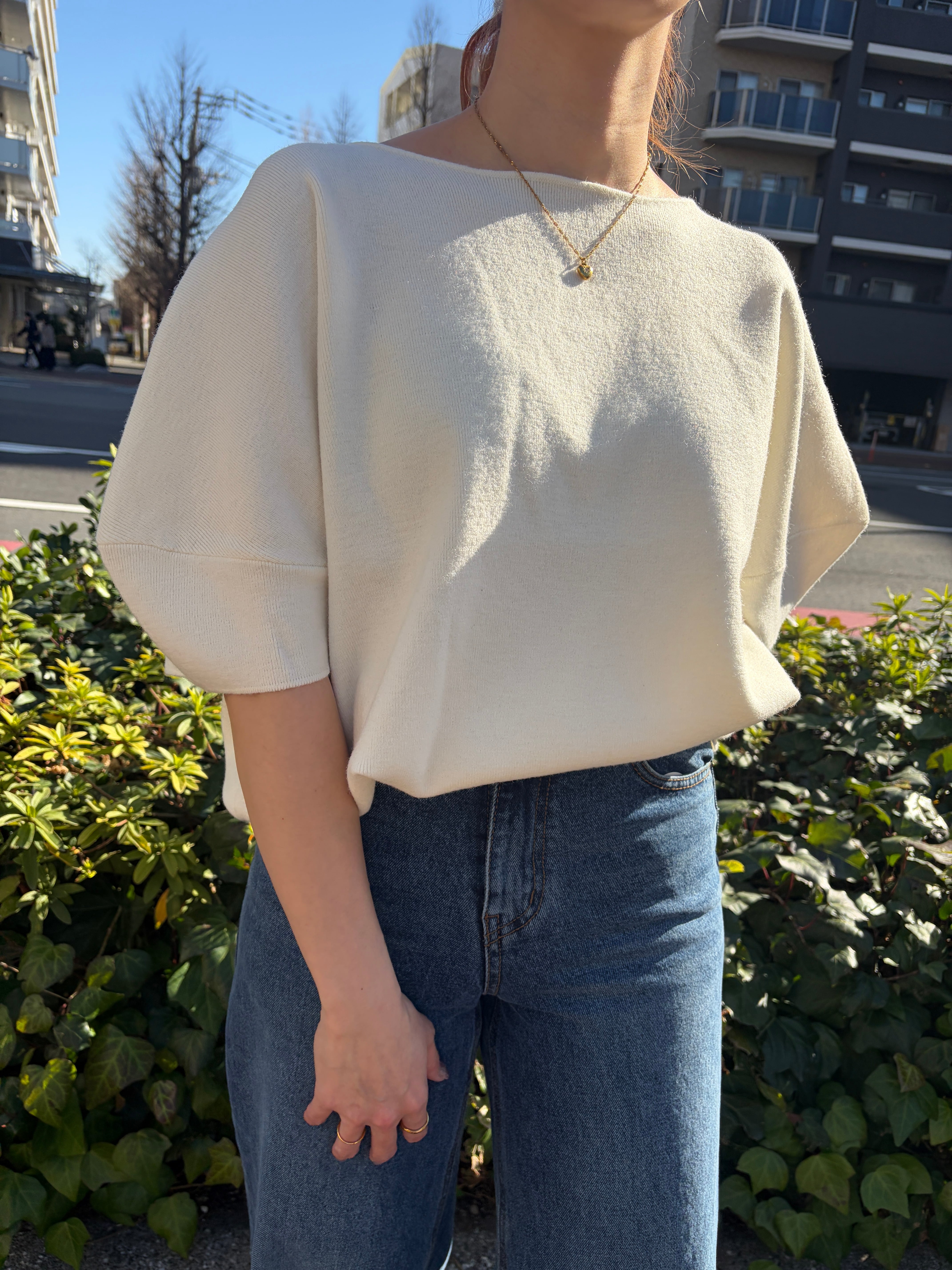 程よい厚みのニット素材を使用し、落ち着いた風合いに仕上げたトップス。