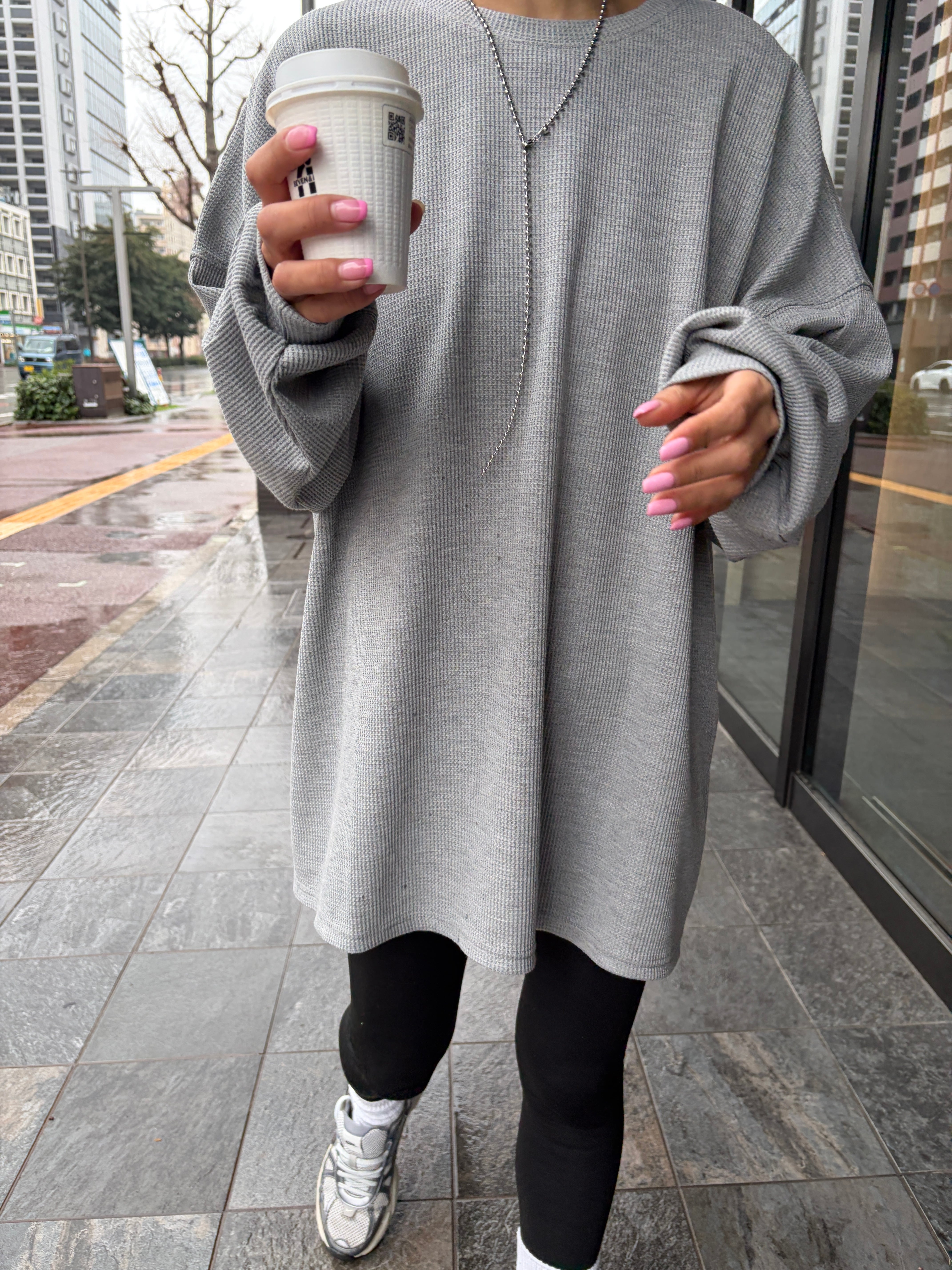 オーバーサイズワッフルプルオーバートップス