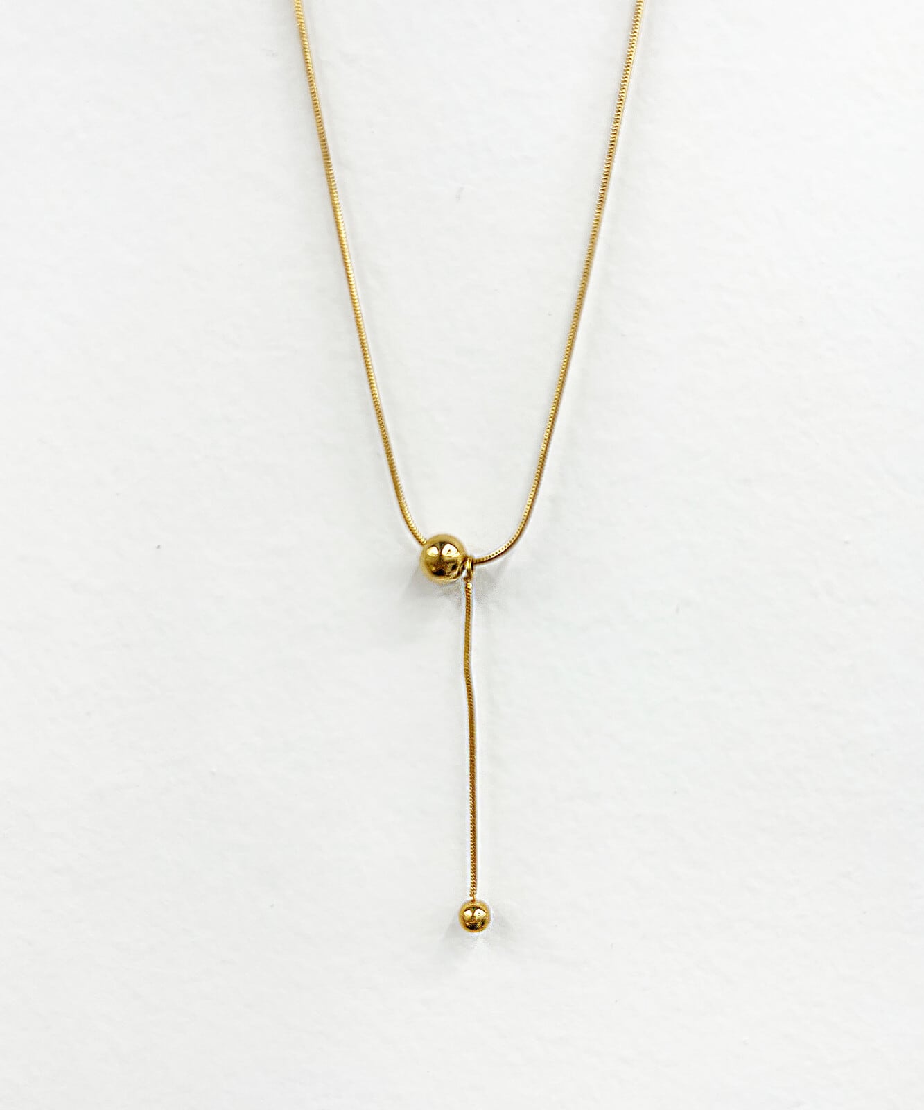 メタルボールに華奢なスネークチェーンを組み合わせたユニークネックレスです