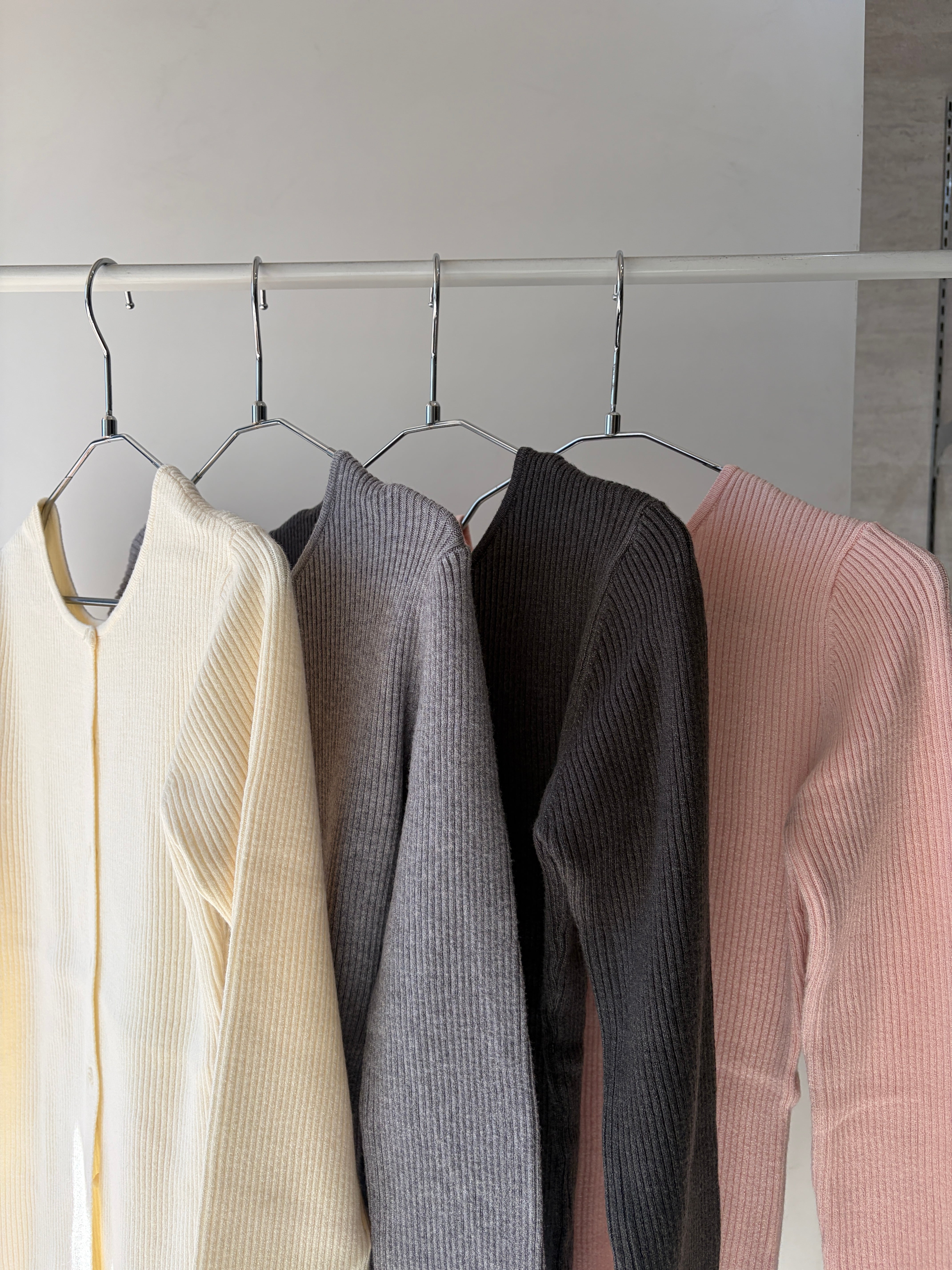 前後2WAYリブ編みクルーネックカーディガン