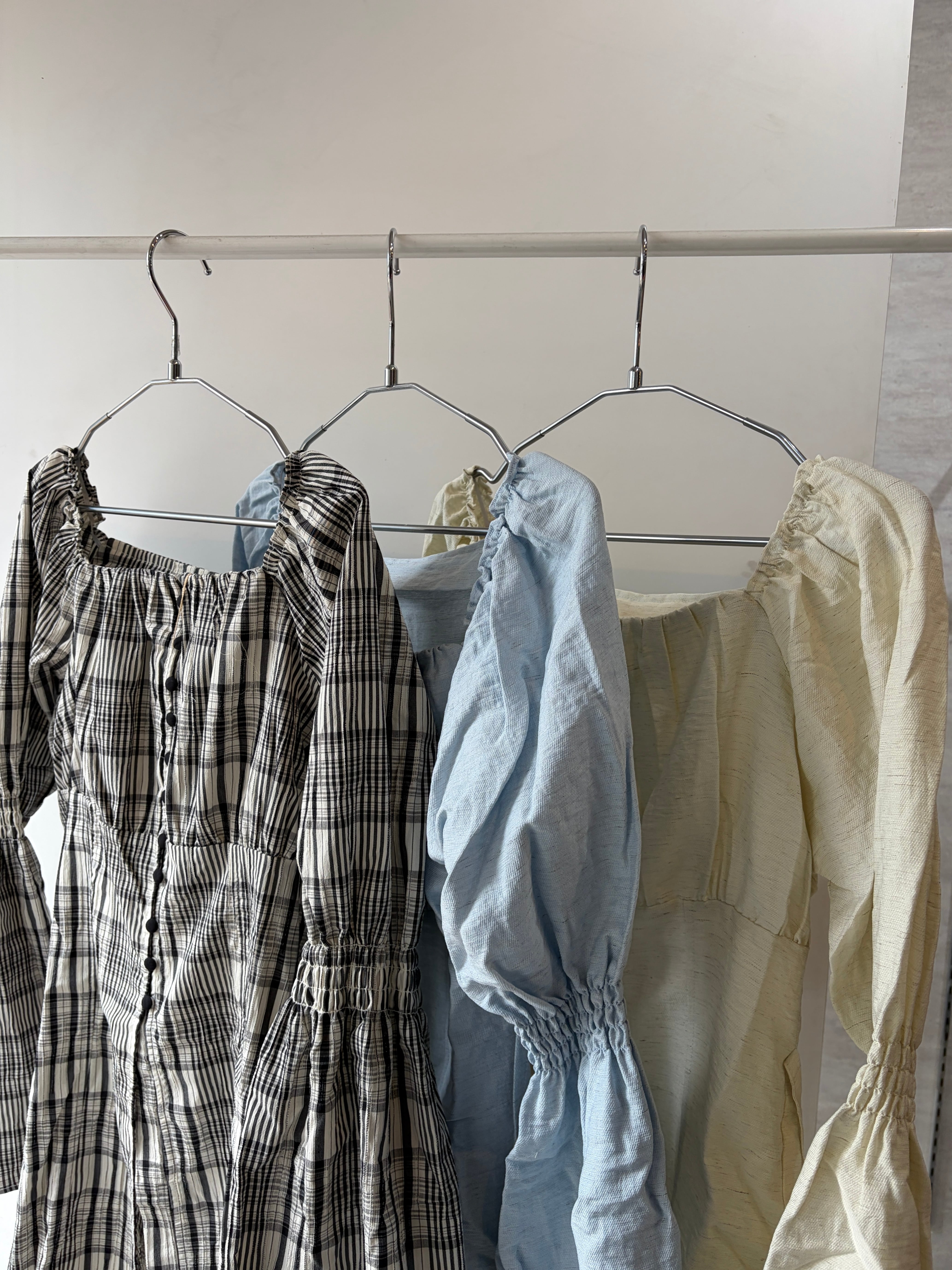 フロントのボタンディテールとウエストの切替が、自然にスタイルアップを叶えてくれる一枚です