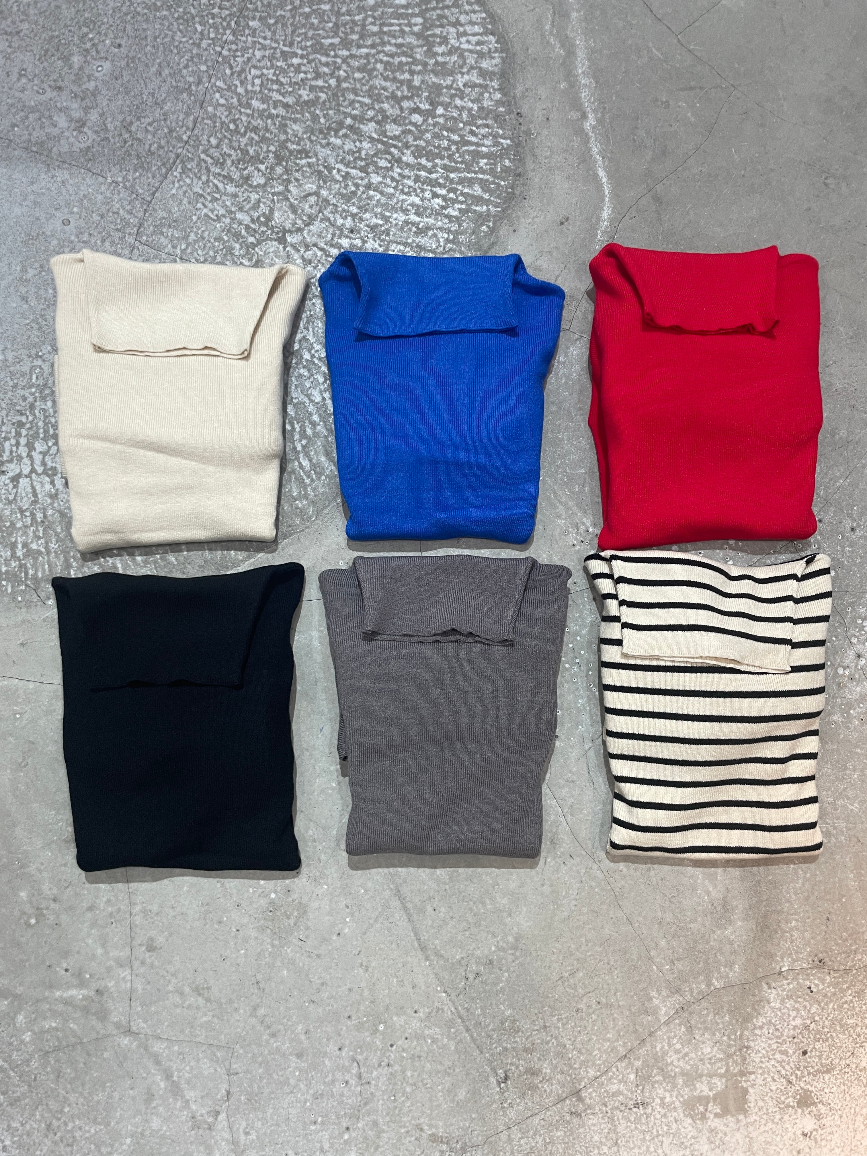 伸縮性の高いニットプルオーバー1枚でもインナーとしても優秀なアイテムですベーシックで飽きのこないデザイン◎