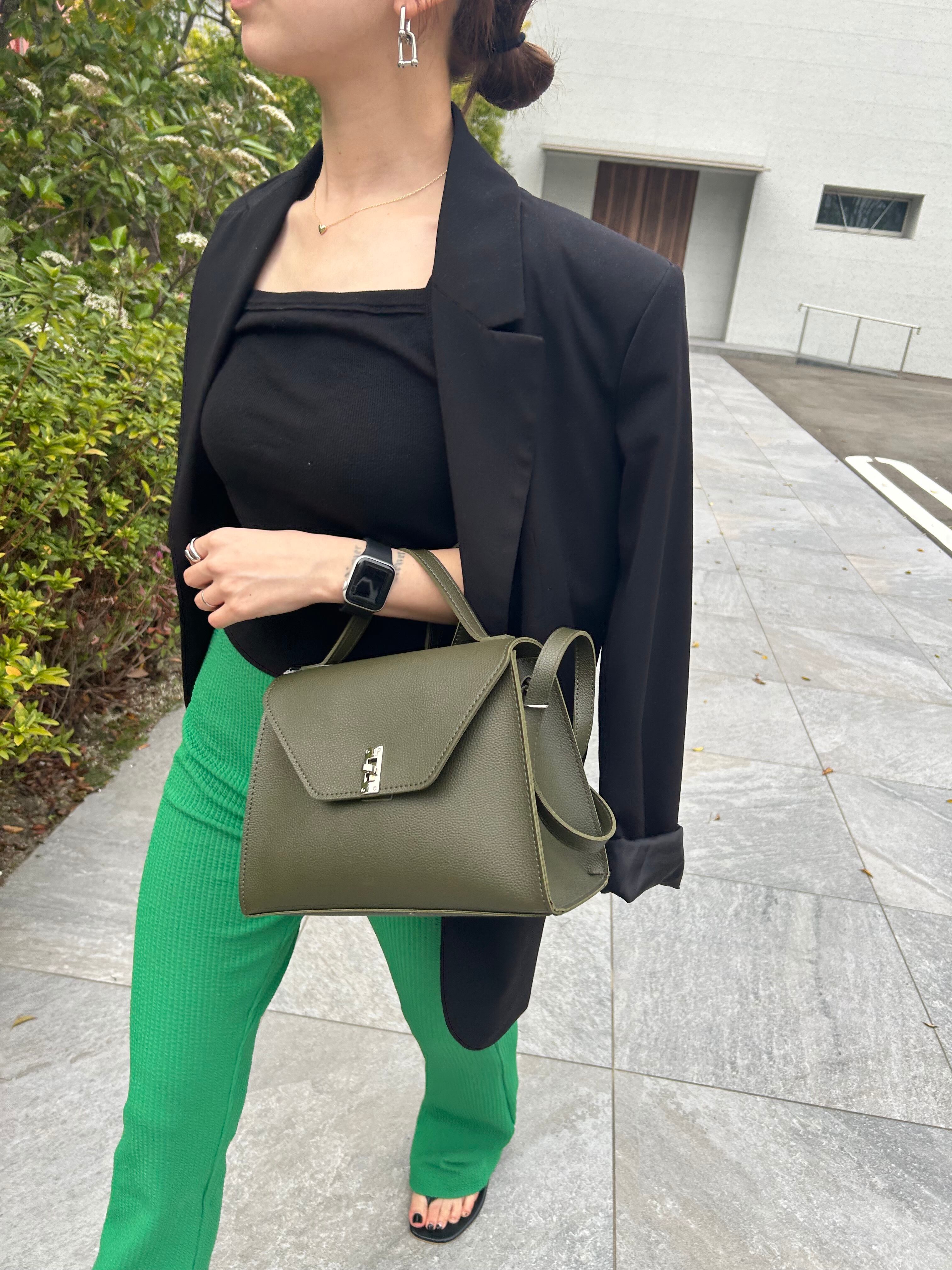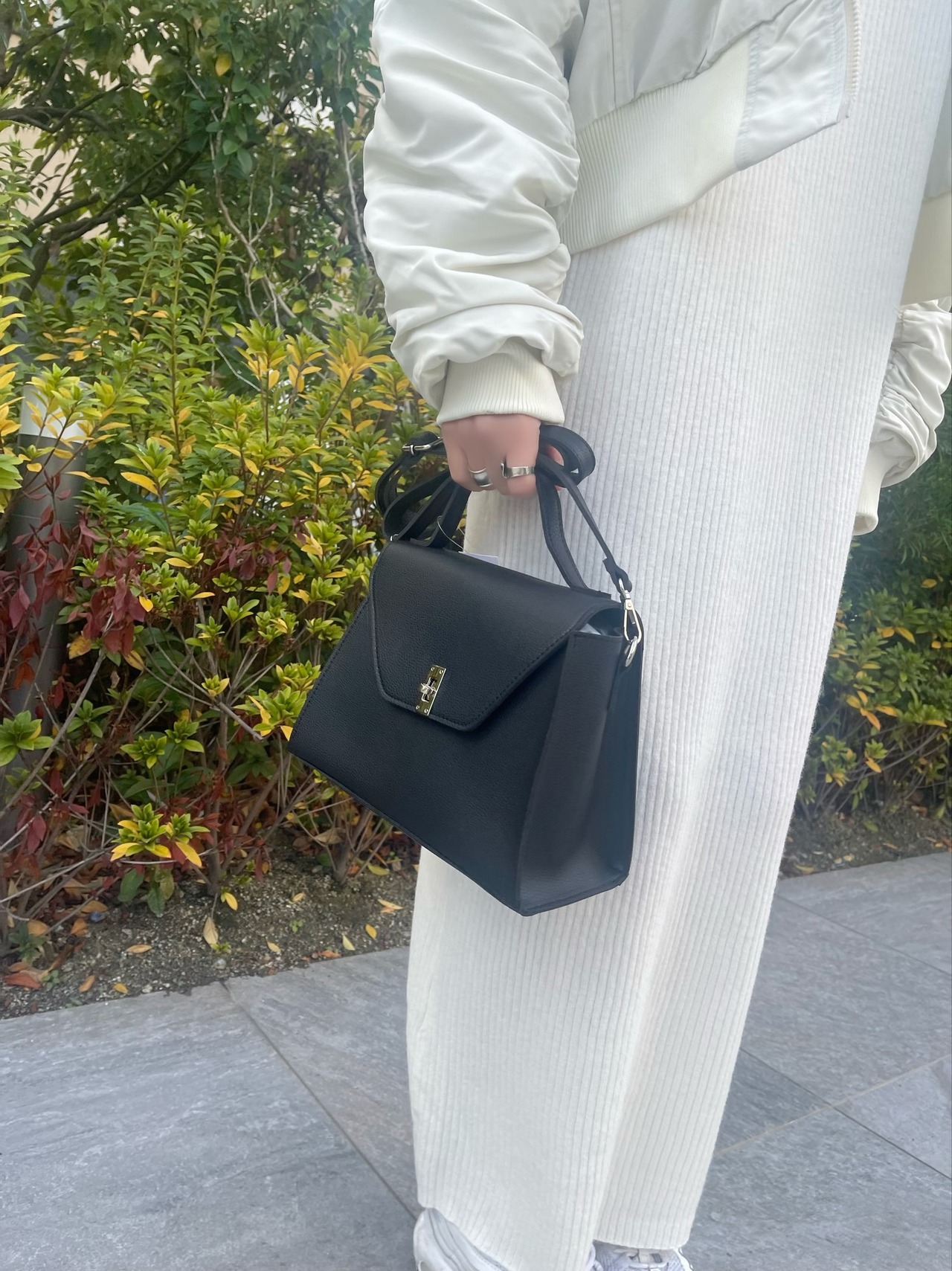 フロントには、ひねり錠金具がデザインされていて、バッグのアクセントになりエレガントな雰囲気を感じられます♡