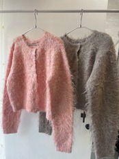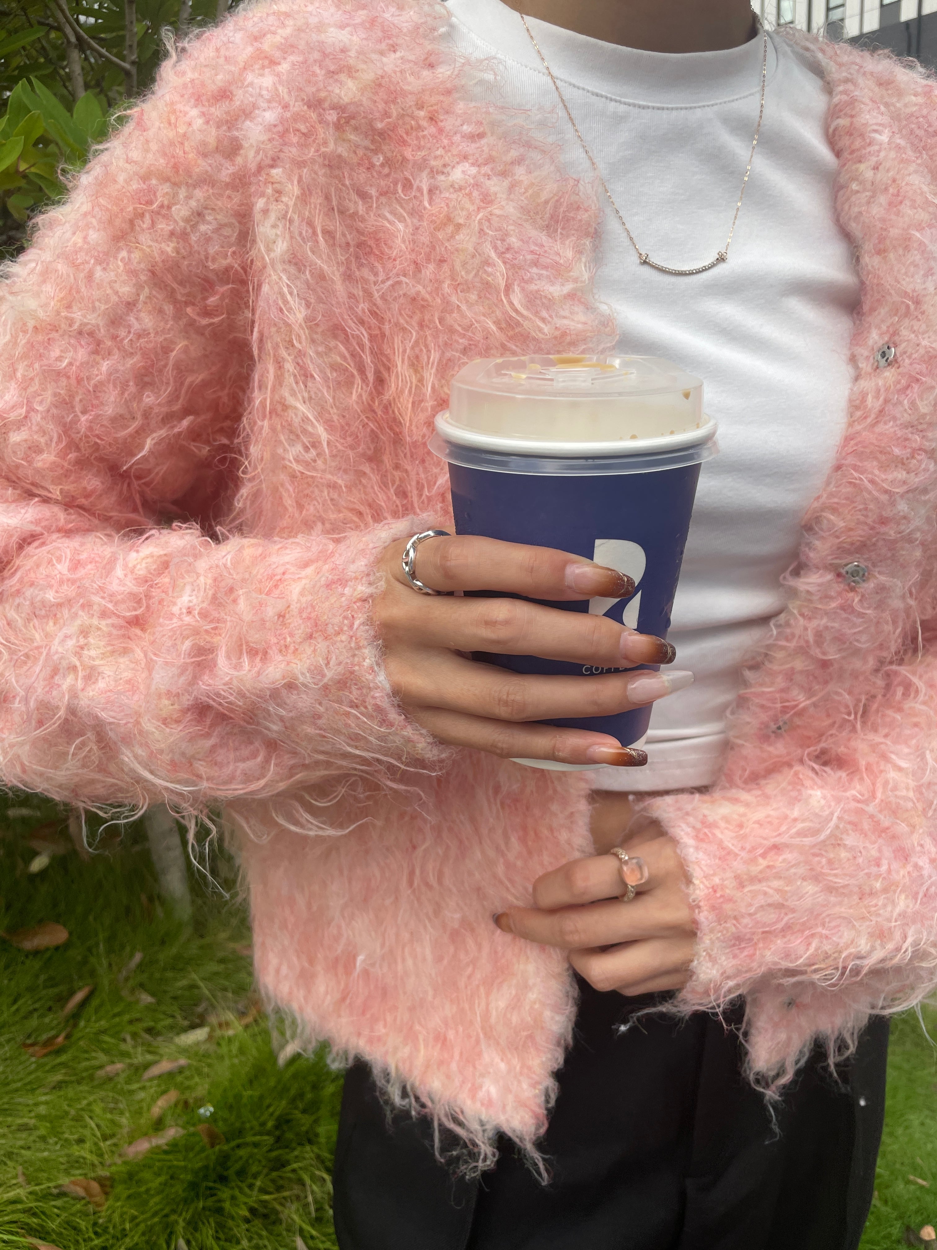 ふんわりとした素材のニットカーディガンミックスのカラーリングがポイントの1枚